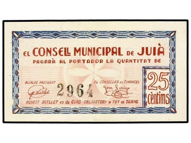 PAPER MONEY OF THE CIVIL WAR: CATALUNYA - 25 Cèntims. 1 Juny 1937. C.M. de JUIÀ. ESCASO. AT-1286; T-1473. SC.
