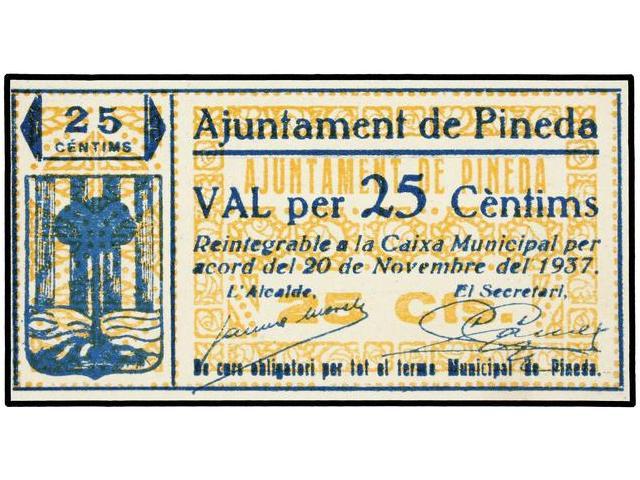 PAPER MONEY OF THE CIVIL WAR: CATALUNYA - 25 Cèntims. 20 Novembre 1937. Aj. de PINEDA. AT-1826a; T-2111a. SC.