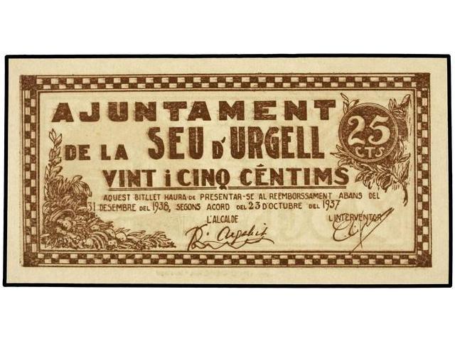 PAPER MONEY OF THE CIVIL WAR: CATALUNYA - 25 Cèntims. 23 d´Octubre 1937. Aj. de LA SEU D´URGELL. AT-2374a; T-2753a. S/C.