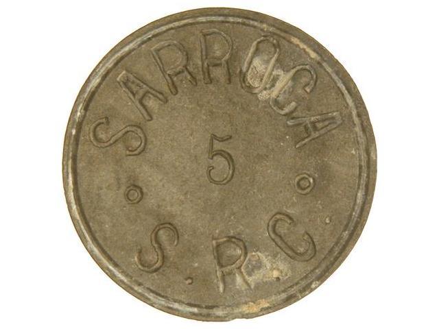 PAPER MONEY OF THE CIVIL WAR: CATALUNYA - 5 Cèntims. S/F. SINDICAT RURAL COOPERATIU SARROCA DE SEGRE. Zn. (Oxidaciones). MUY RARA. T-2663. MBC.