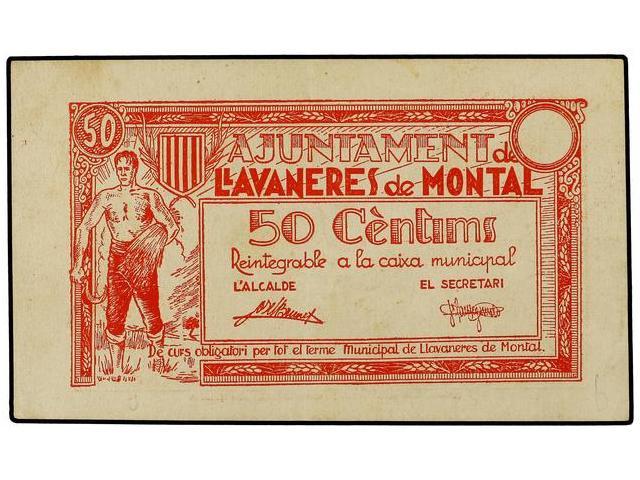PAPER MONEY OF THE CIVIL WAR: CATALUNYA - 50 Cènitms. S/F. Aj. de LLAVANERES DE MONTAL. ESCASO. AT-1336b; T-1529b. EBC+.