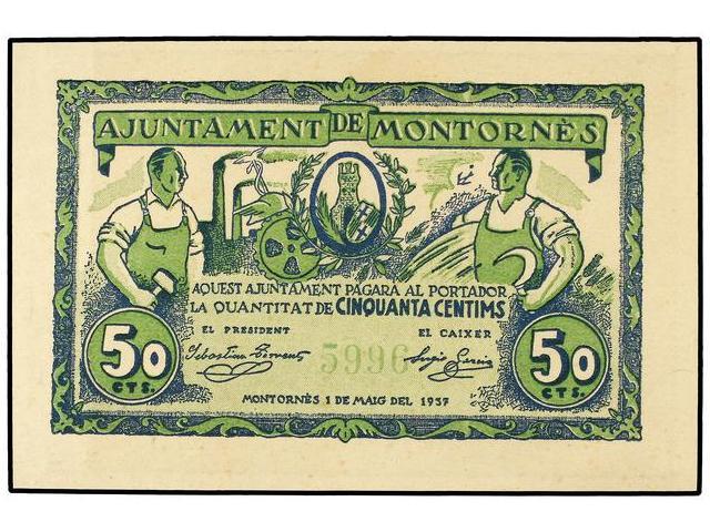 PAPER MONEY OF THE CIVIL WAR: CATALUNYA - 50 Cèntims. 1 Maig 1937. Aj. de MONTORNÈS. ESCASO. AT-1592d; T-1828d. SC.