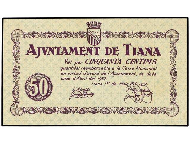PAPER MONEY OF THE CIVIL WAR: CATALUNYA - 50 Cèntims. 1 Maig 1937. Aj. de TIANA. AT-2463; T-2853. EBC+.