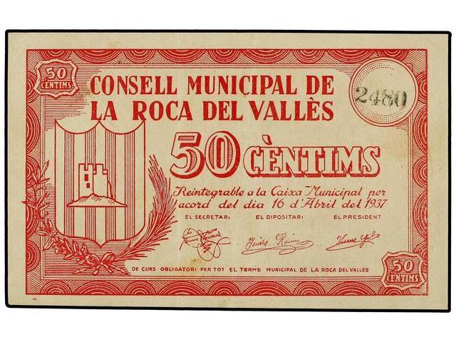 PAPER MONEY OF THE CIVIL WAR: CATALUNYA - 50 Cèntims. 16 d´Abril 1937. C.M. de LA ROCA DEL VALLÈS. AT-2175c; T-2512c. EBC-.