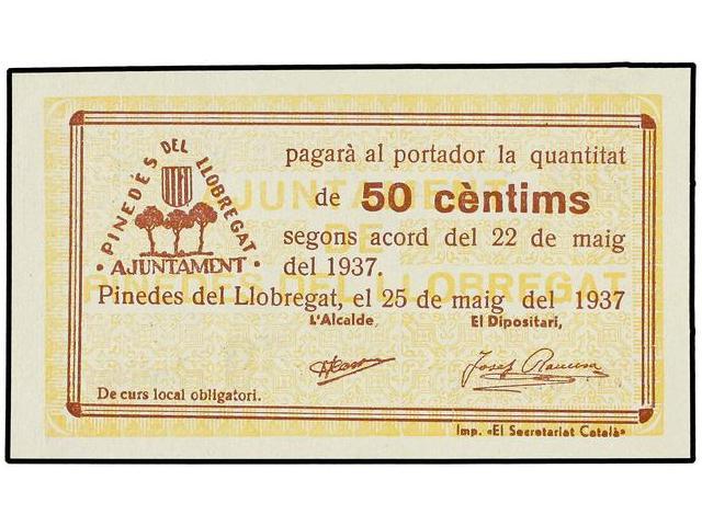 PAPER MONEY OF THE CIVIL WAR: CATALUNYA - 50 Cèntims. 25 Maig 1937. Aj. de PINEDES DEL LLOBREGAT. AT-1830d; T-2116d. SC.