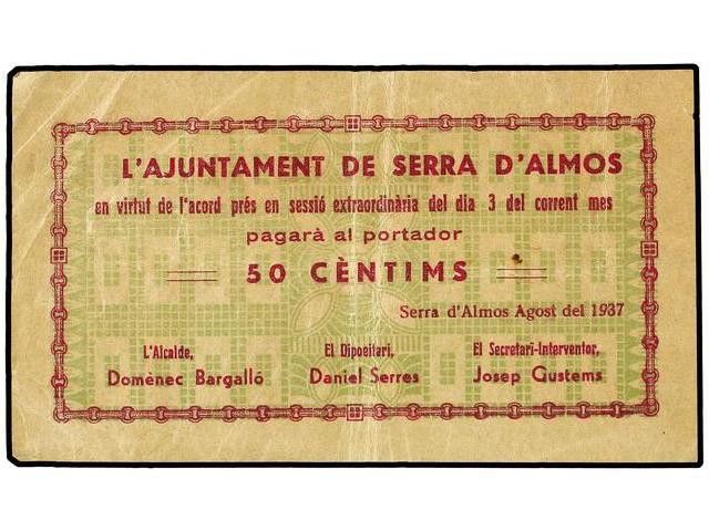 PAPER MONEY OF THE CIVIL WAR: CATALUNYA - 50 Cèntims. 3 Agost 1937. Aj. de SERRA D´ALMOS. AT-2355c; T-2729c. MBC.