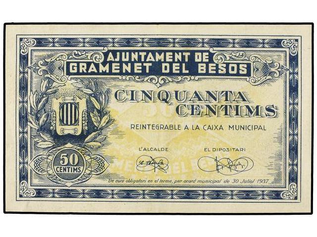 PAPER MONEY OF THE CIVIL WAR: CATALUNYA - 50 Cèntims. 30 Juliol 1937. Aj. de GRAMANET DEL BESÓS. AT-1150; T-1328. MBC+.