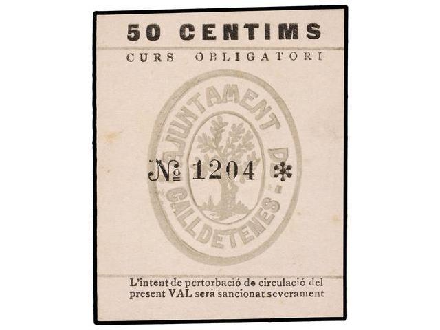 PAPER MONEY OF THE CIVIL WAR: CATALUNYA - 50 Cèntims. S/F. Aj. de CALLDETENES. ESCASO. AT-607; T-707. EBC+.