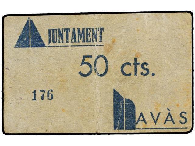 PAPER MONEY OF THE CIVIL WAR: CATALUNYA - 50 Cèntims. S/F. Aj. de NAVÀS. (Sucio). AT-1647a; T-1893a. MBC.