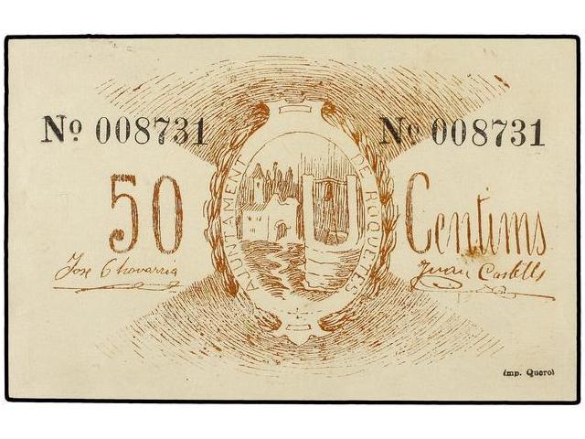 PAPER MONEY OF THE CIVIL WAR: CATALUNYA - 50 Cèntims. S/F. Aj. de ROQUETES. ESCASO. AT-2205; T-2546. EBC+.