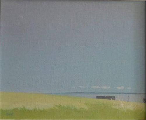 PAQUET, Guy, 1949- . "Le Temps d'une Pause". Huile sur toile, signée. Signée et titrée verso. Oil on canvas, signed and titled verso. Provenance: Galerie d'art Vincent, Hull, Québec. 10" x 12" - 25cm x 31cm.
