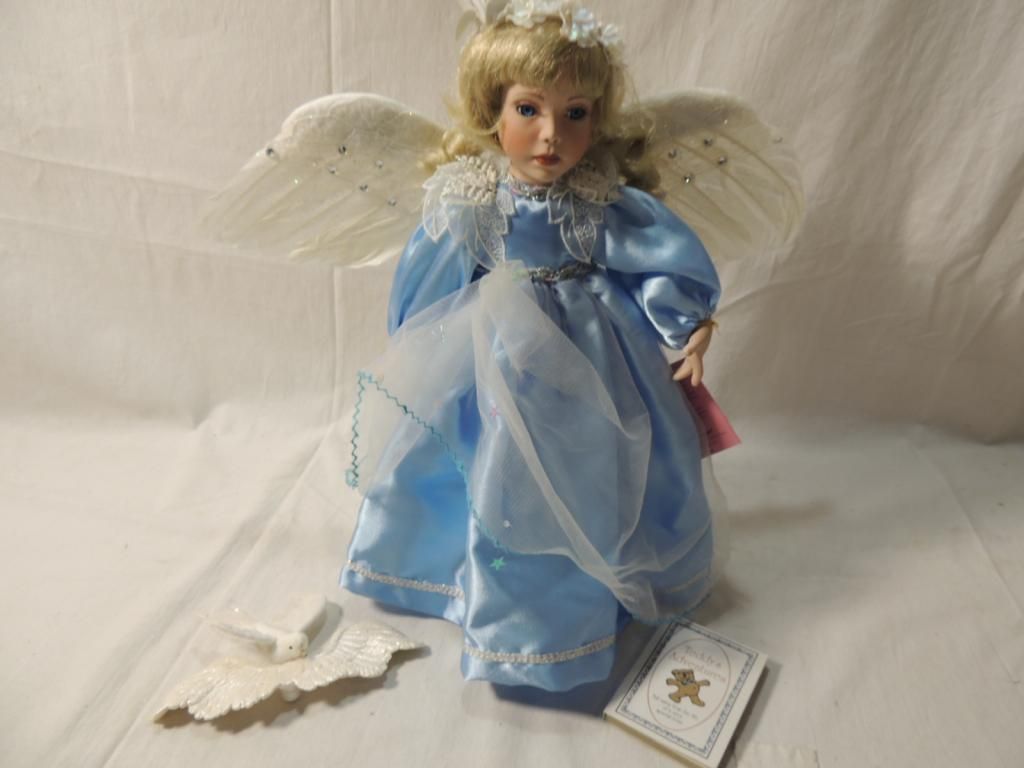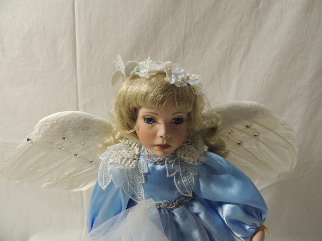 PARADISE GALLERIES. ANGEL DOLL BEAUTIFUL DOLL PORCELAIN DOLLS BLUE DRESS WINGS. AS SHOWN. SEE PHOTO FOR MORE DETAILS
