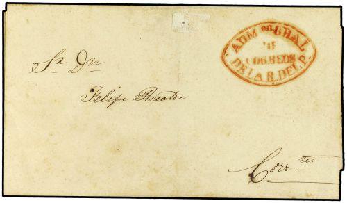 (1860 CA.) Conjunto de 8 envueltas con la marca ovalada ADM. GRAL DE CORREOS DE LA R. DEL P. en colores, rojo, negro y azul.