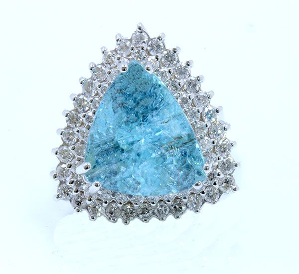 PARAIBA TOURMALINE 14.97CT, 18K W/G RING 11.86GRAM / DIAMOND 1.67CT
