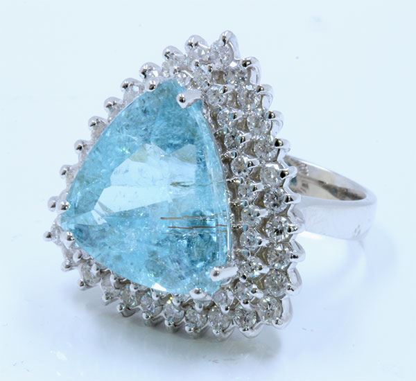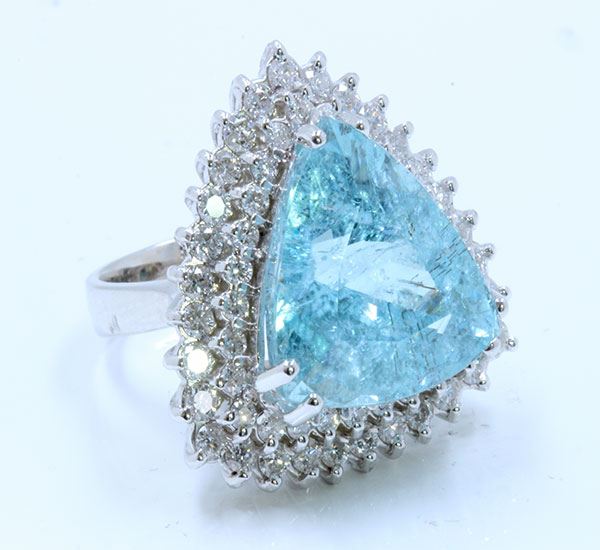 PARAIBA TOURMALINE 14.97CT, 18K W/G RING 11.86GRAM / DIAMOND 1.67CT