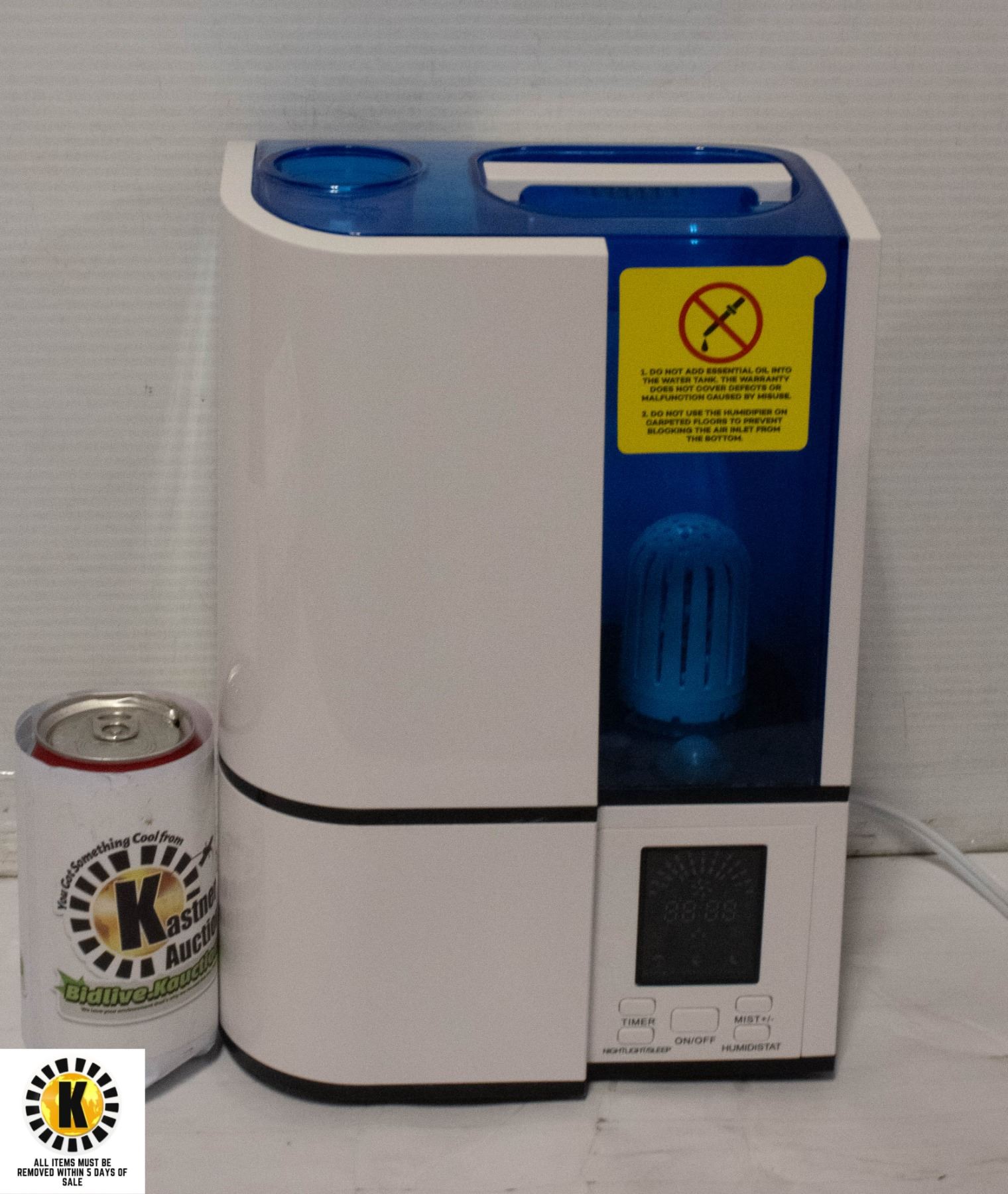 HUMIDIFER WITH HUMIDISTAT, LED DISPLAY, QUIET OPERATION, SLEEP MODE, 24H TYIMER, WATERLESS AUTOSHUT OFF, NIGHT LIFT. USED CONDITION