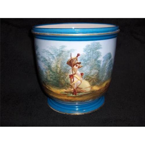 A Truly delightful hand decorated jardinaire from PARIS c1885,amusingly portraying a duck in full uniform protecting his egg standing to attention .............lovely and we offer in unrestored perfect condition .
