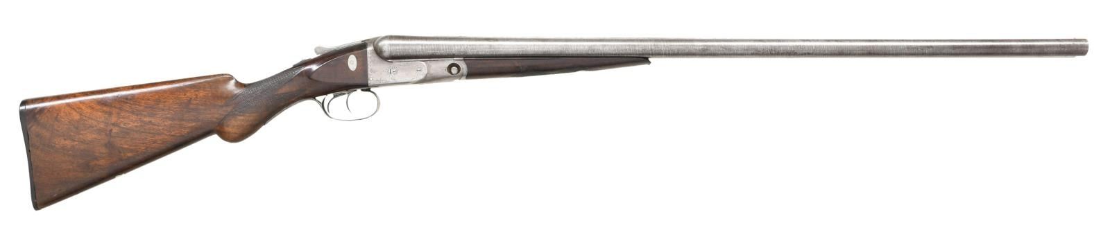 Cal. 12 Ga., 2 5/8". S# 112093 (1902). Matching numbered Twist steel 30" bbls. w/ "T" shaped extension, matted slightly raised rib & bright bead. Size 2 frame w/ acanthus light scroll engraving. Boxlock action w/ dbl. triggers, extractors & automatic safety. Checkered splinter forearm & rnd. knob pistol grip stock w/ German silver shield plate on toeline. LOP: 13 1/8" to Parker buttplate. CONDITION: bbls. have a fair gray twist pattern w/ scattered spots of peppery oxidation & marks. Action has gray appearance w/ wear, faded blue on trigger guard bow & patina. Bottom of pistol grip shows significant sanding & refinish, balance of wood good refinished showing smoothing of edges & checkering along w/ handling marks. Shiny bores w/ minimal fouling forward of chambers. Action is tight on face. (23-2042/MD). CURIO. $300-500.
