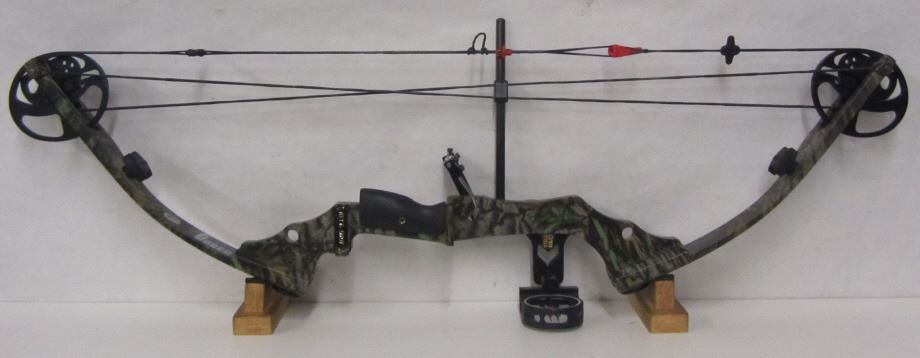 40-50# DRAW WEIGHT, 18-28" DRAW LENGTH, 52" STRING, 33.75" CABLE, S/N 295-6453, HAS ARROW REST AND TRUGLO SIGHT WITH KISSER BUTTON AND PEEP SIGHT IN STRING. CUSTOM BUILT BY R. JONES.