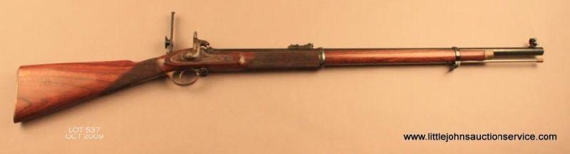 PARKER HALE Volunteer percussion target rifle, # H-1496, .45 cal, adjustable globe front sight, ladder rear sight, blued finish with checkered walnut stock. Rifle remains in excellent condition overall. Est. $400-$800.