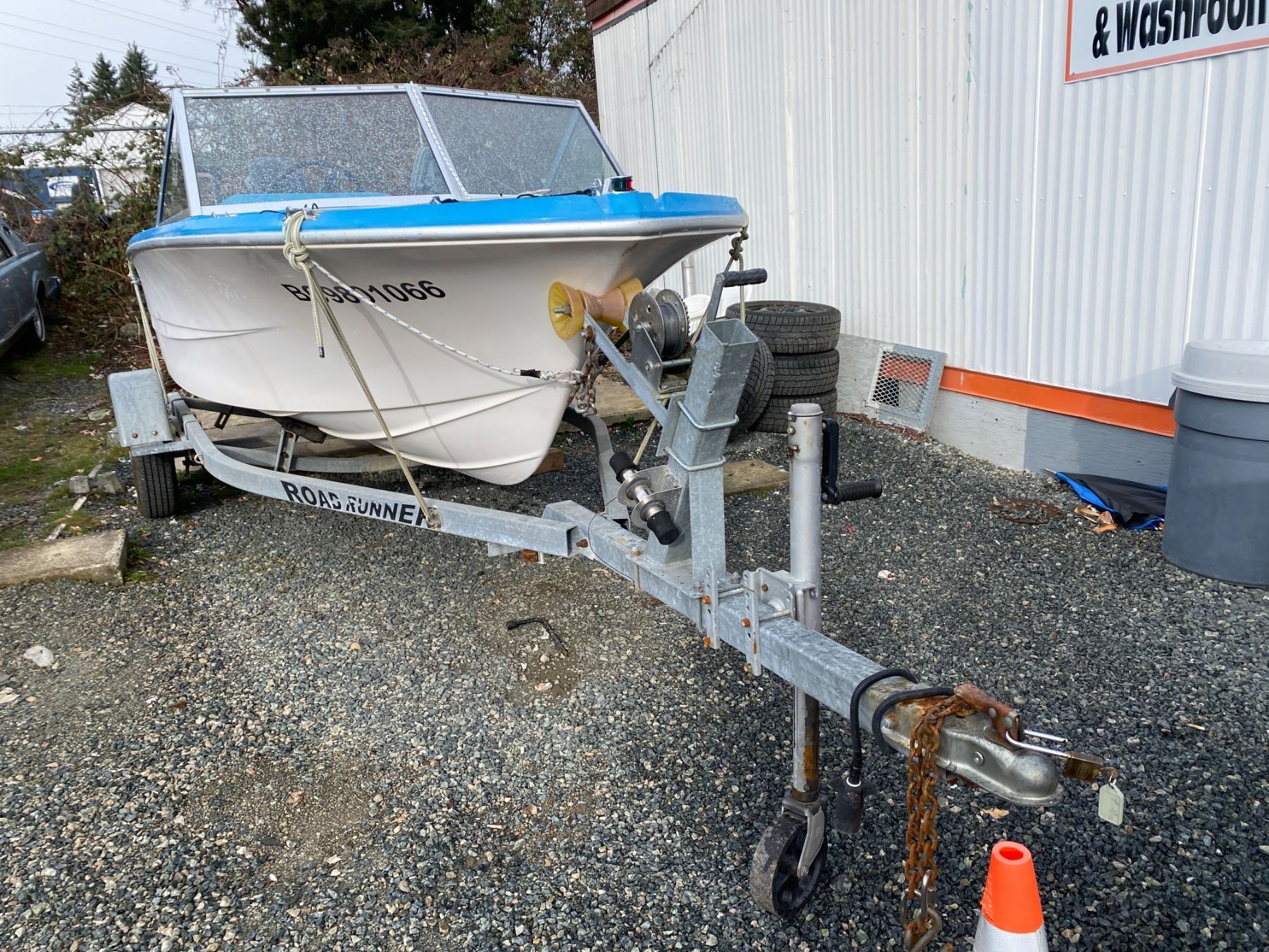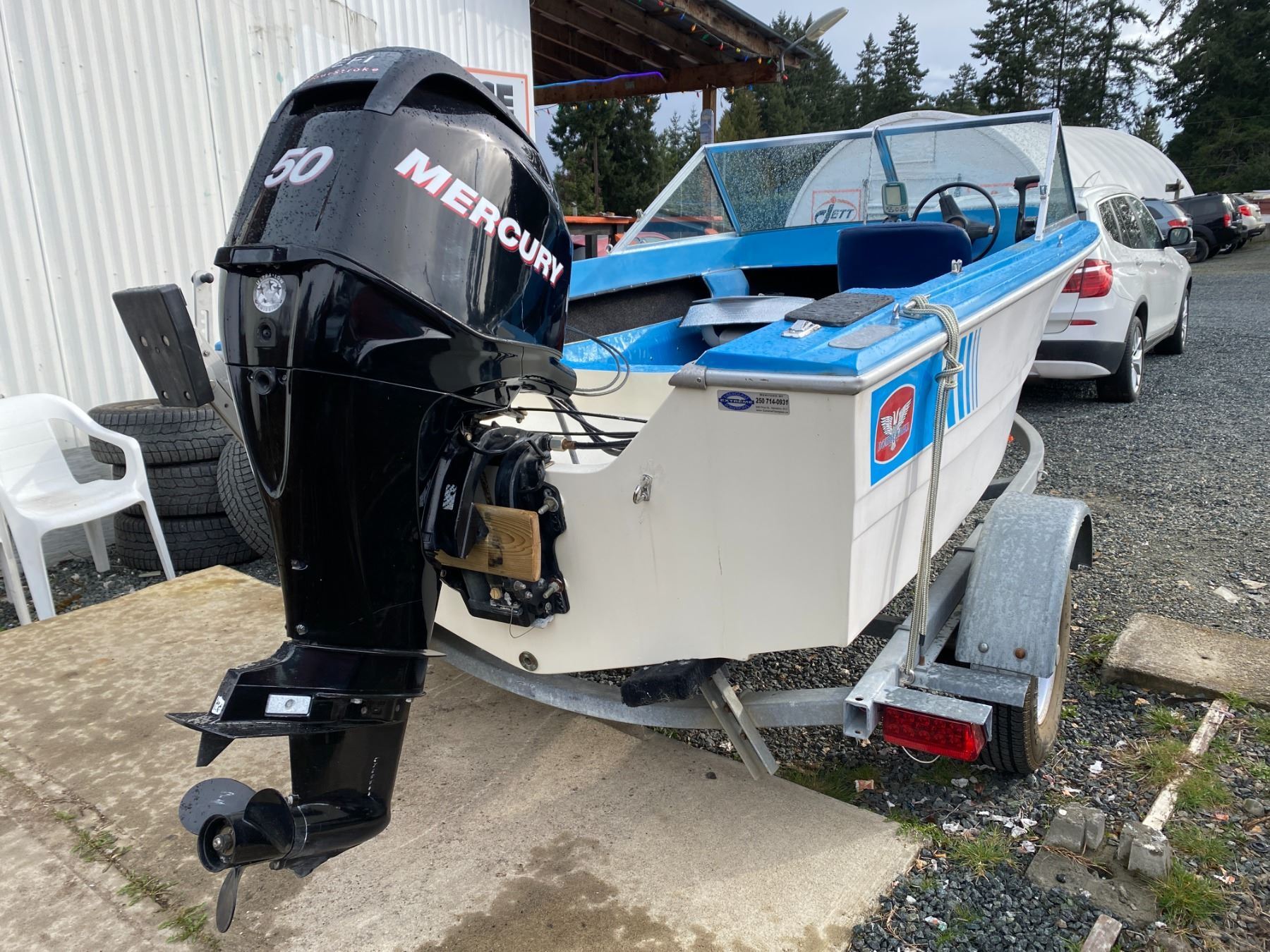 AUCTION NOTES: 14 FT BOAT COMES WITH A 50 HP MERCURY OUTBOARD 4 STROKE. ON A 18FT ROAD RUNNER TRAILER.