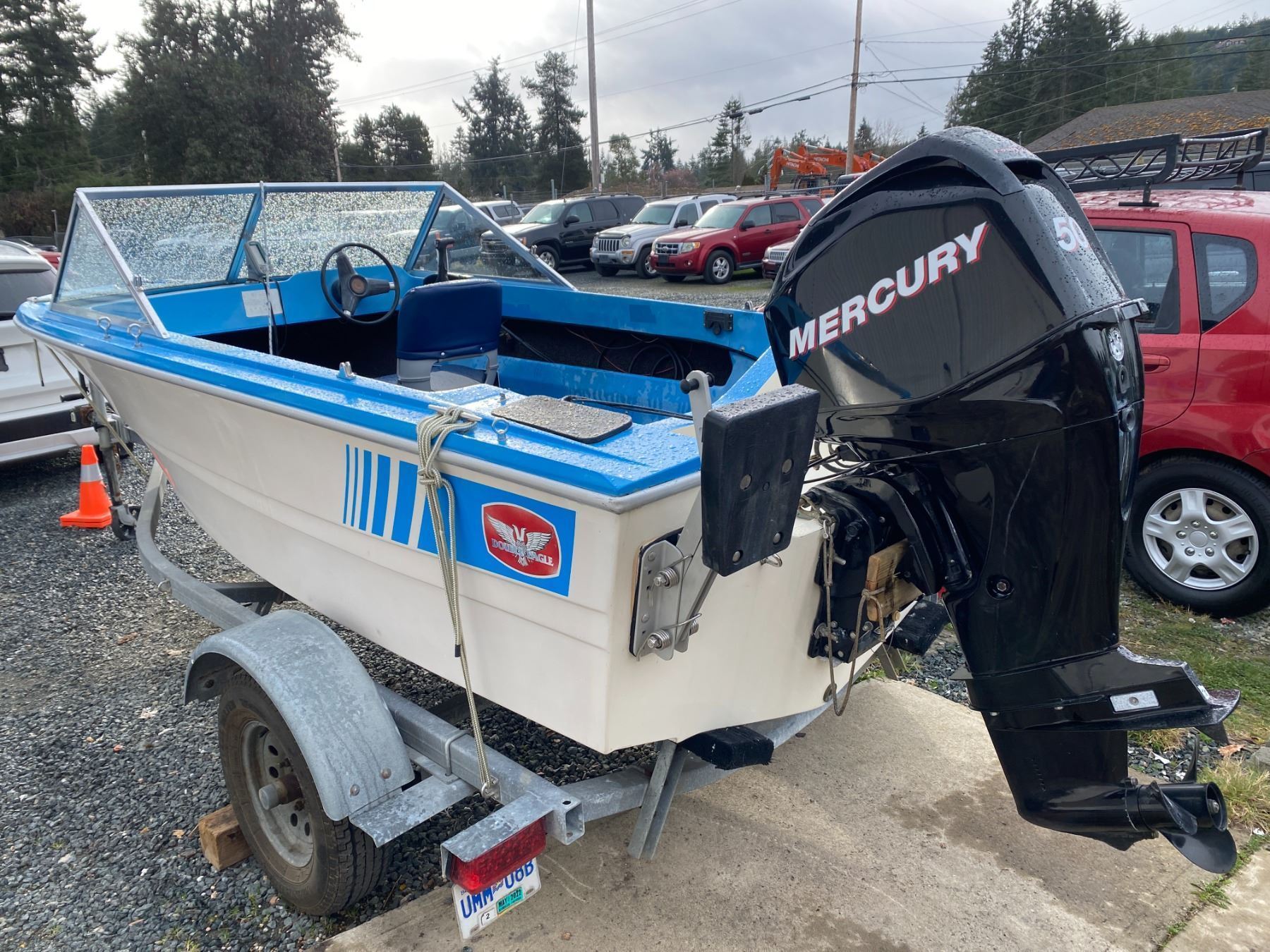 1981 DOUBLE EAGLE RUNABOUT KMS 50 GASOLINE NO DESIGNATIONS DESIGNATIONS NOT MECHANICALLY INSPECTED, NOT SUITABLE FOR TRANSPORTATION. MUST TOW. ALL RECREATIONAL VEHICLES SOLD AS PRESENTED, NO RETURNS. CONSIGNER NOTES: BEARINGS AND WIRING DONE AT PARKER MARINE. LED LIGHTS INSTALLED. LOW HOURS ON THE MOTOR. CONSIGNOR BOUGHT IT NEW FROM IN 2009. EFI MOTOR (NOT CARBURETED) TRANSOM WAS REBUILT AT EXTREME FIBREGLASS IN 2021. NEW SEATS WITH CUSTOM MADE SWIVELS.
