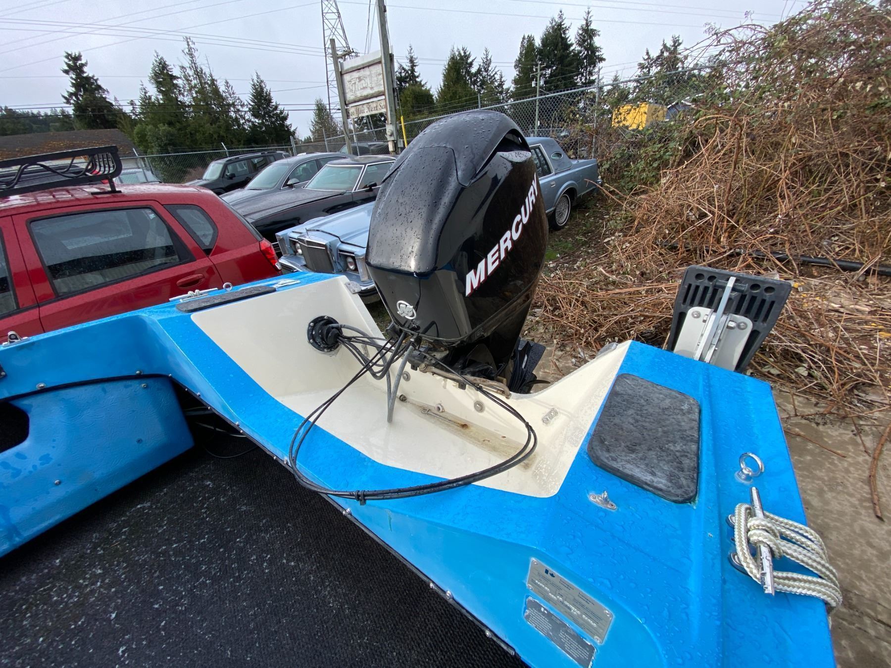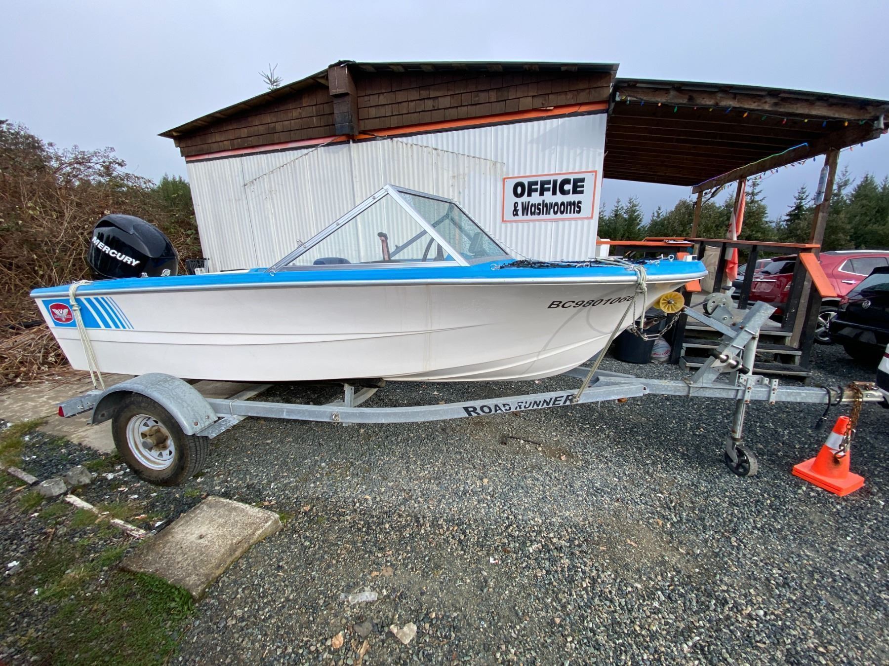 AUCTION NOTES: 14 FT BOAT COMES WITH A 50 HP MERCURY OUTBOARD 4 STROKE. ON A 18FT ROAD RUNNER TRAILER.