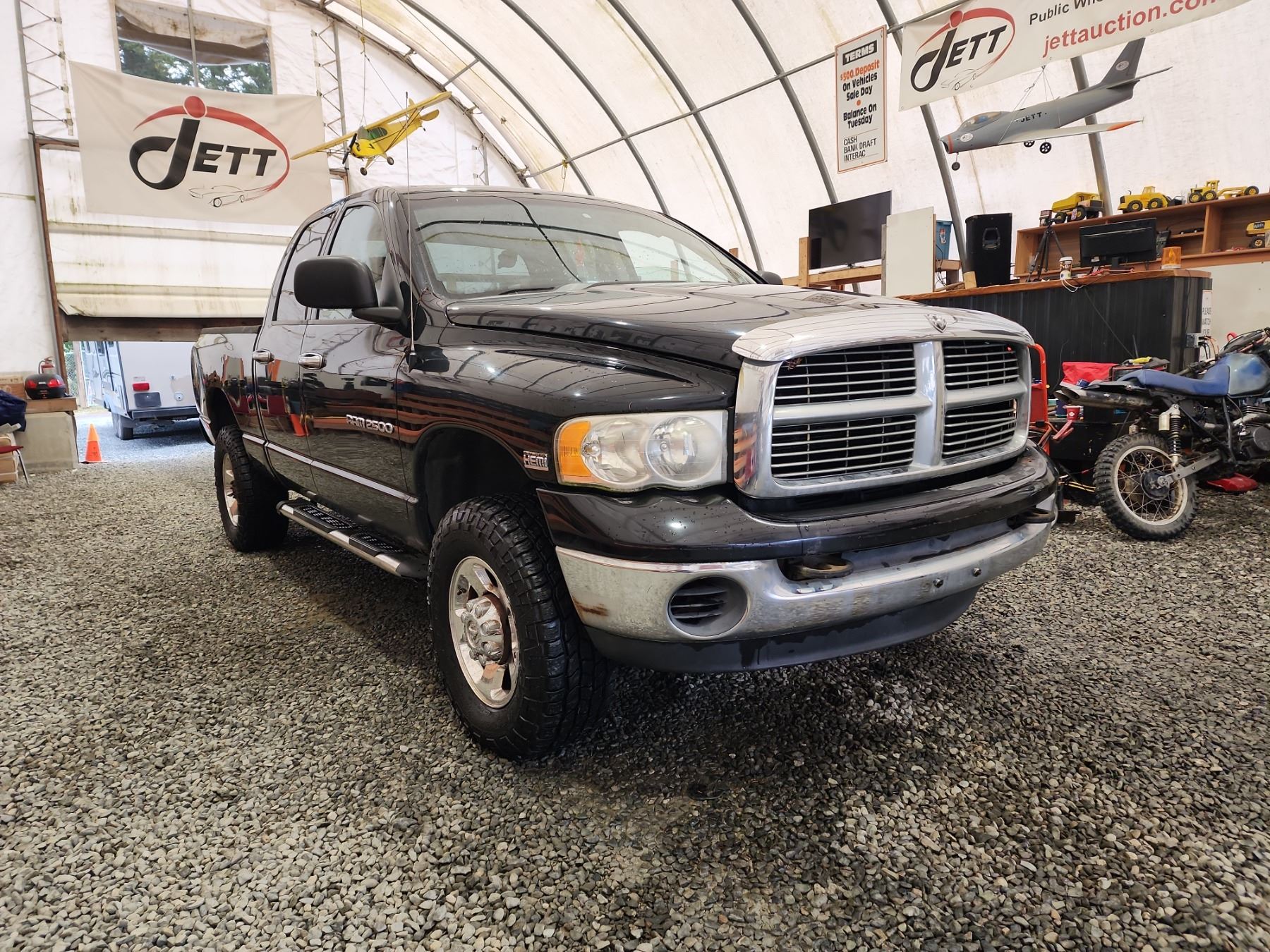 2004 DODGE RAM2500, BLACK, 261968 KMS, 5.7L, 8 CYLINDER, GASOLINE,  AUTOMATIC, TRANSMISSION,  4X4, 6 PASSENGER. AIR CONDITIONING, POWER WINDOWS, POWER LOCKS, KEY-LESS ENTRY, TILT STEERING, CRUISE CONTROL, ALLOY WHEELS, ANTI THEFT, DUAL AIR BAGS, CD PLAYER, BLUETOOTH, AFTERMARKET STEREO, POWER SEATS, HEATED MIRRORS, BOX LINER, TOW PACKAGE, TRAILER BRAKE CONTROL, RUNNING BOARDS, POWER MIRRORS, NO REPORTED ACCIDENTS., CHIP OR CRACK IN WINDSHIELD, SPLIT-FOLDING REAR SEATS. DECLARATIONS: EX-LEASE 0 ACCIDENTS 0 GLASS CLAIM, TOTALLING $0. SERVICE HISTORY SHOWS41 RECORDS. AUCTION NOTES: LOCATION: PARKSVILLE. THIS VEHICLE IS AT OUR PARKSVILLE SITE, 861 ALLSBROOK RD, PARKSVILLE, BC. ALL VIEWING, PAYMENT, AND PICKUP HAPPEN AT THIS LOCATION ONLY.  STOCK #:  B89589 1D7KU28D94J189589 WE DO NOT GUARANTEE MANIFOLDS IN THE HEMI ENGINES  NOT MECHANICALLY INSPECTED, NOT SUITABLE FOR TRANSPORTATION, MUST TOW.