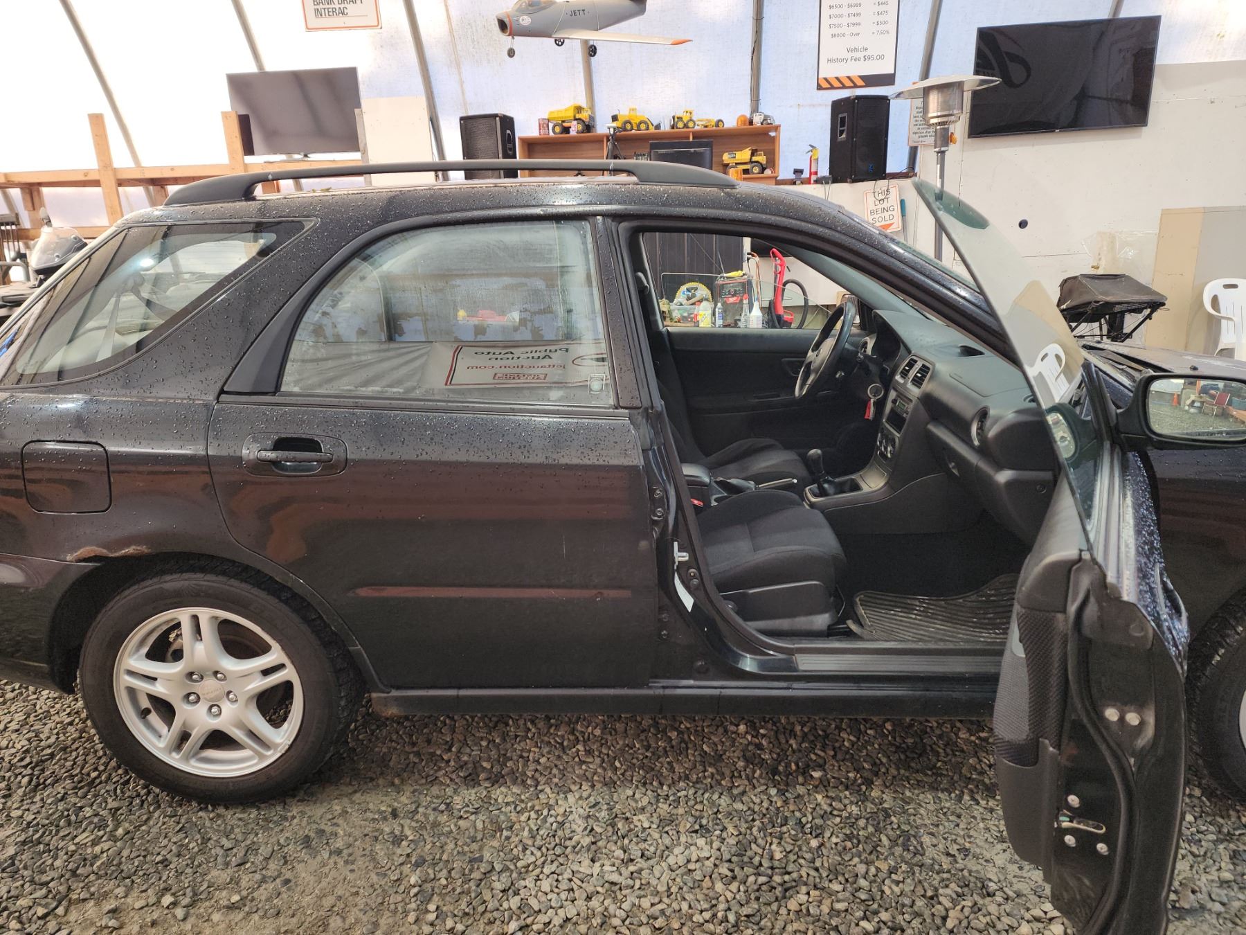 2005 SUBARU IMPREZA, BLACK, 277420 KMS, 2.5L, 4 CYLINDER, GASOLINE, MANUAL, TRANSMISSION, ALL WHEEL DRIVE, 5 PASSENGER. AIR CONDITIONING, POWER WINDOWS, POWER LOCKS, TILT STEERING, CRUISE CONTROL, ANTI THEFT, DUAL AIR BAGS, CD PLAYER, ROOF RACK, POWER MIRRORS, SPLIT-FOLDING REAR SEATS. DECLARATIONS: EX-OUT OF PROVINCE, REBUILT STATUS 2 ACCIDENTS 0 GLASS CLAIM, TOTALLING $0. SERVICE HISTORY SHOWS8 RECORDS. AUCTION NOTES: LOCATION: PARKSVILLE. THIS VEHICLE IS AT OUR PARKSVILLE SITE, 861 ALLSBROOK RD, PARKSVILLE, BC. ALL VIEWING, PAYMENT, AND PICKUP HAPPEN AT THIS LOCATION ONLY. STOCK #: B802269 JF1GGB7555G802269 NOT MECHANICALLY INSPECTED, NOT SUITABLE FOR TRANSPORTATION, MUST TOW.