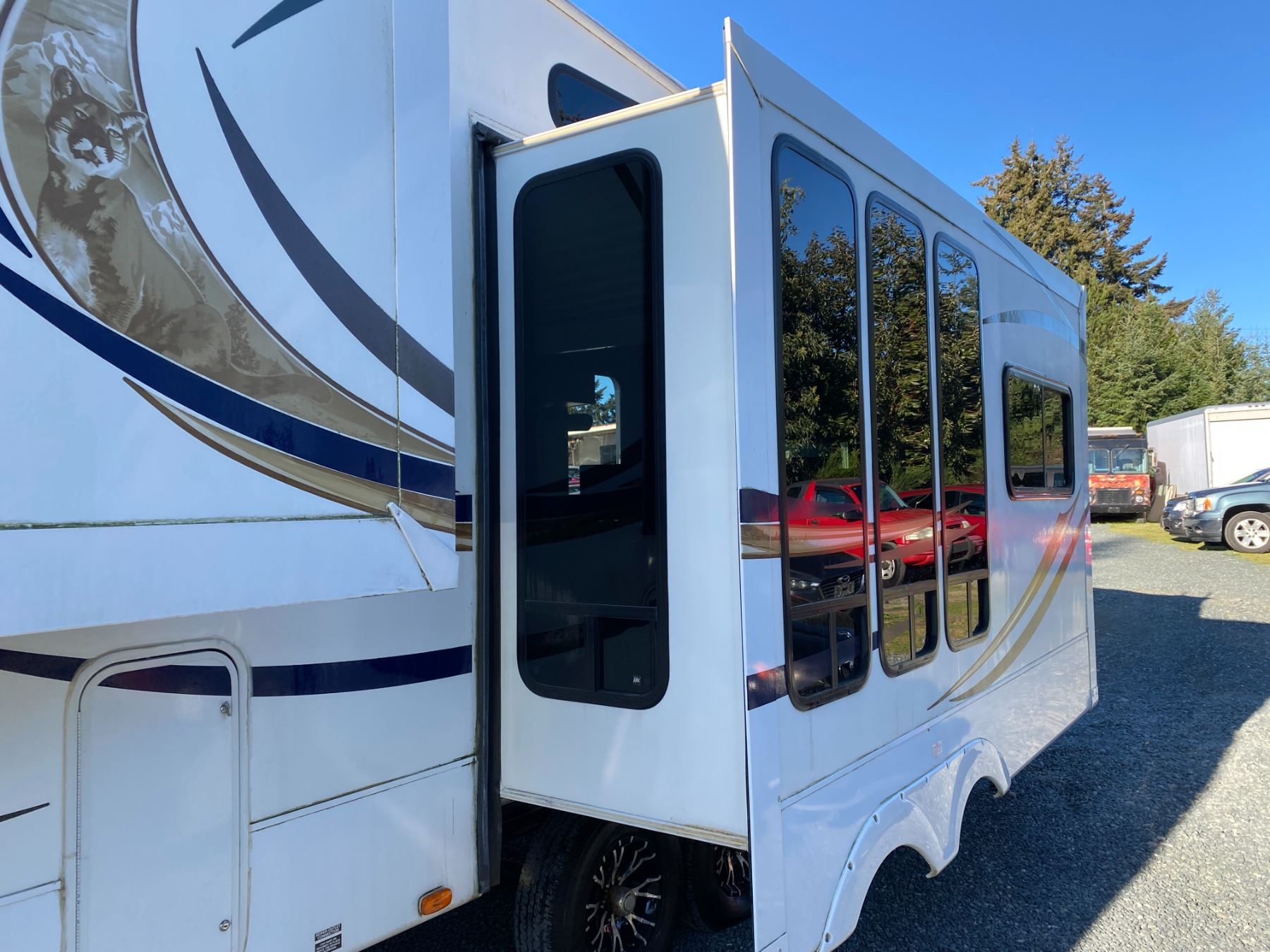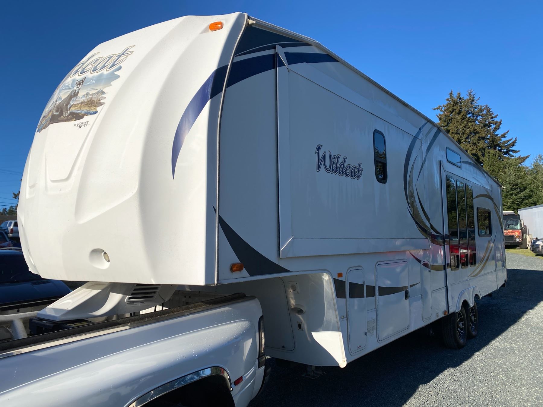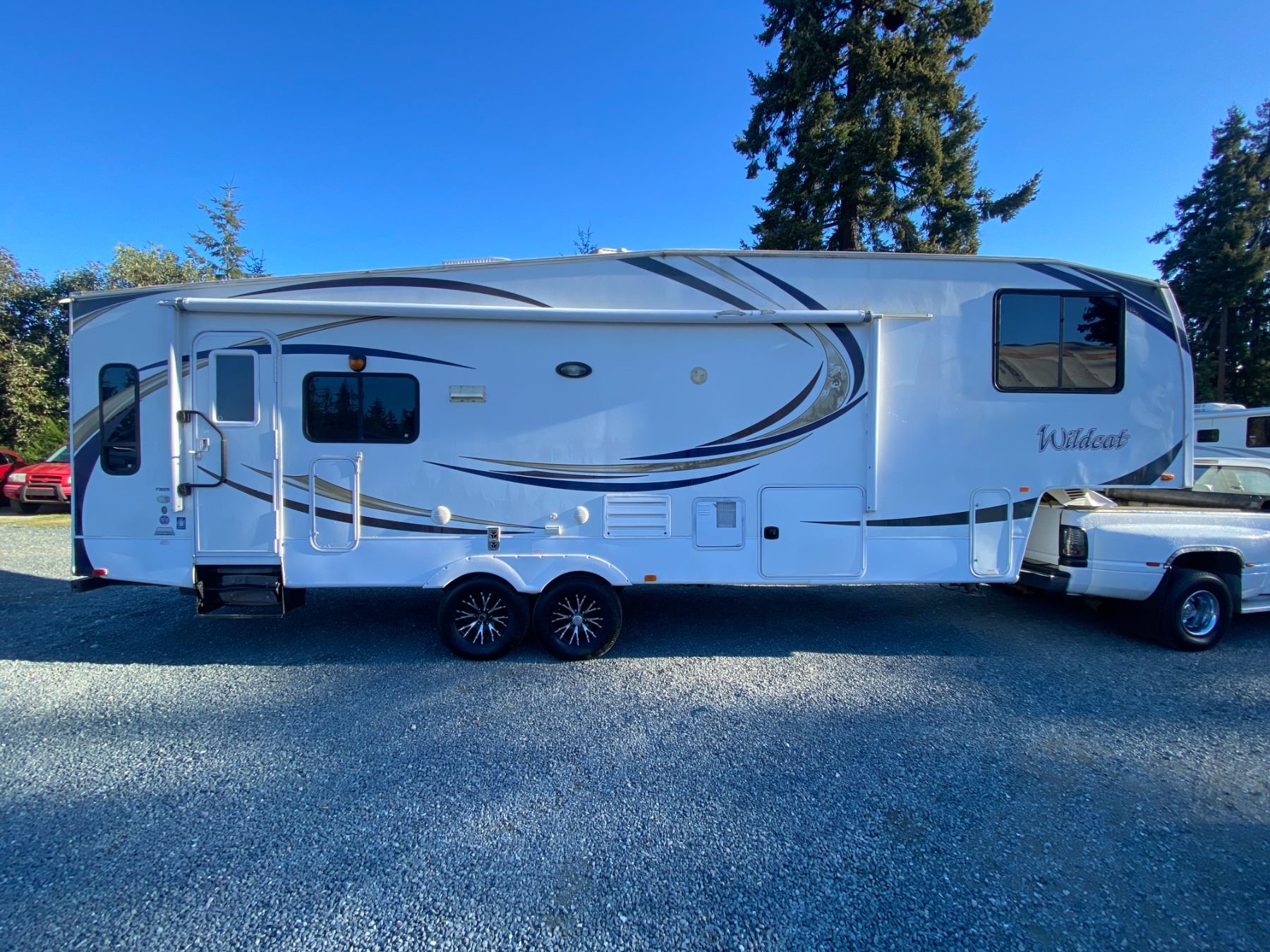 2012 Wildcat 5th wheel White Length 30+ feet, Dry Weight 5,000-10,000 lbs, 2 Slide-Outs, 30 amp Electric System, Sleeps 6, Queen Bed, Sofa Bed, Air Conditioning, Heating System, Fireplace, Pantry Storage, Closet Space, Window Blinds or Shades, Entertainment Features (TV, DVD, Radio), Kitchen Appliances Included, Gas Refrigerator, Electric Refrigerator, Microwave, Stove or Oven, Freestanding Table and Chairs No Designations 0 ACCIDENT TOTALING 0 Not Mechanically Inspected, Not Suitable For Transportation. Must Tow. All Recreational vehicles are sold as presented with no returns