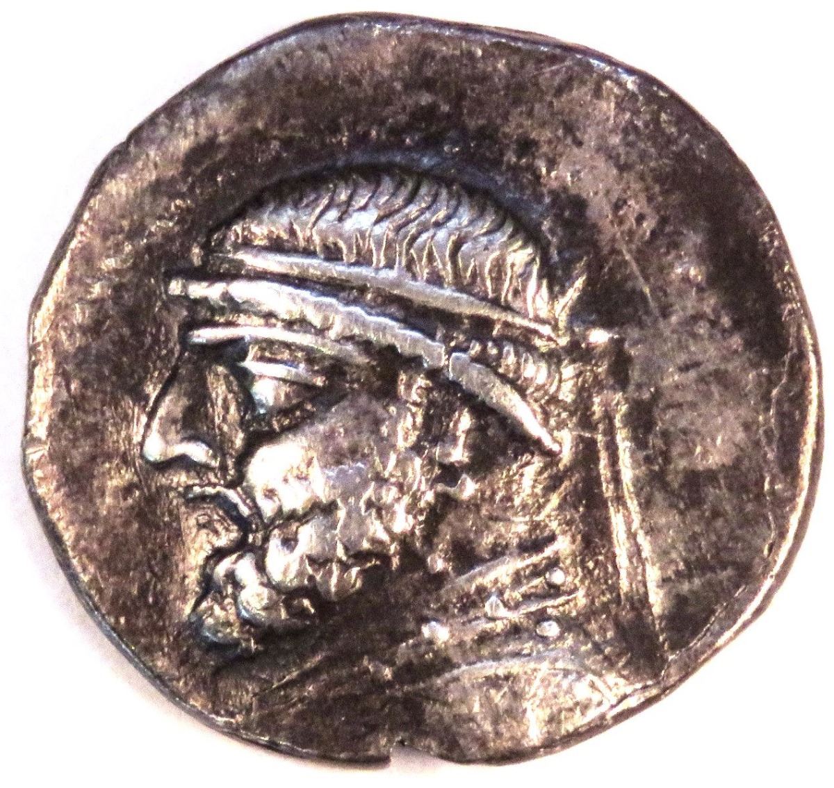 PARTHIAN KING SILVER DIRACHM, MITHRADATES II THE GREAT MINT: EKBATANA, 3.41g, 20mm., 121-91 BC, VF+