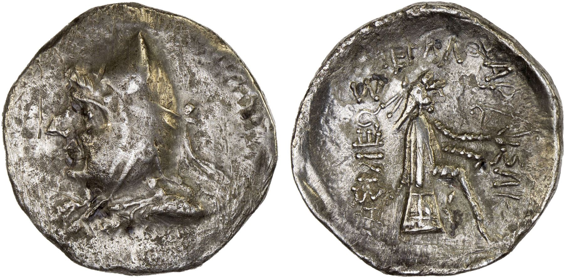 PARTHIAN KINGDOM: Mithradates I, c. 171-138 BC, AR drachm (4.00g), Shore-12, Sell-10.1, beardless bust left, wearing bashlik // 3-line legend around the seated archer, scrapes and scratches, VF.