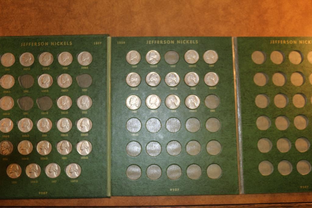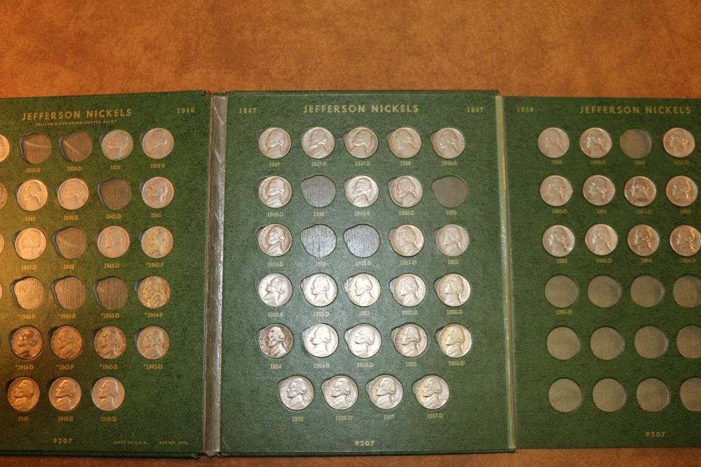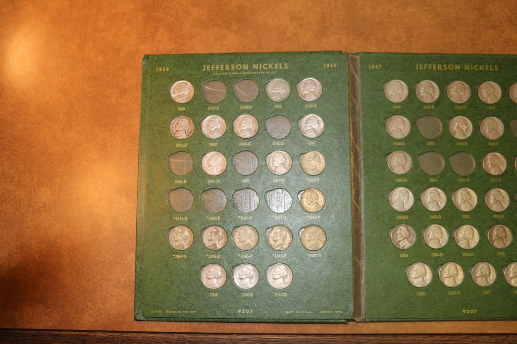 INCLUDING 7 - 35% SILVER JEFFERSON WAR NICKELS AND THE KEY DATE 1950-D, IN WHITMAN ALBUM