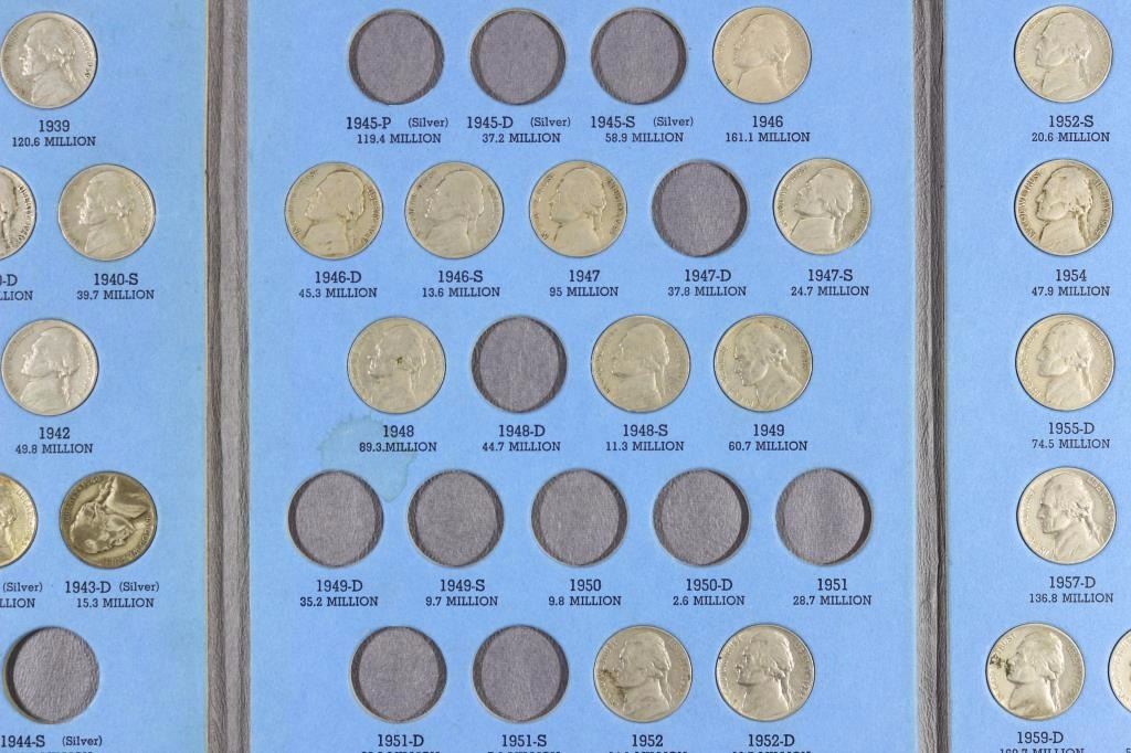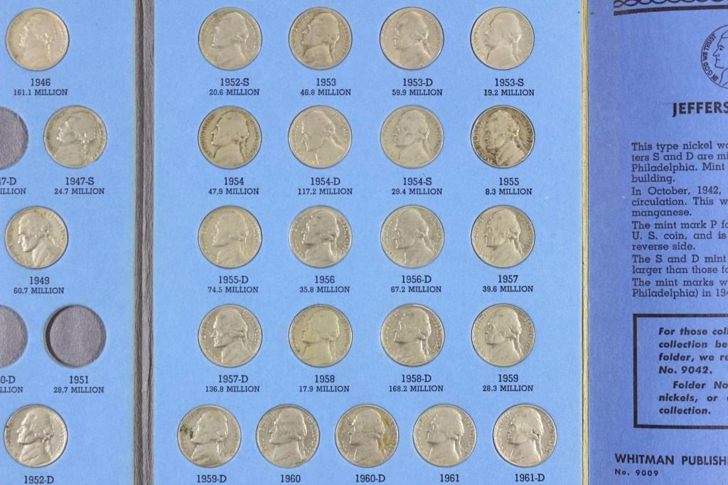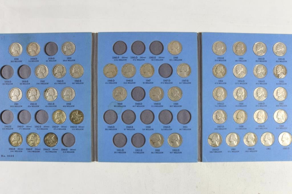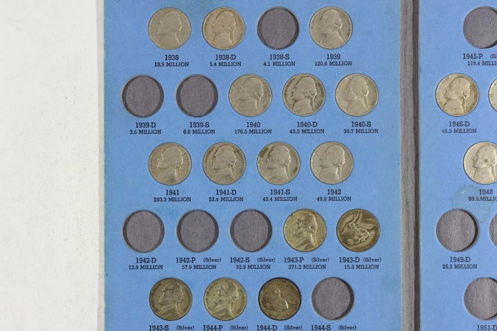 INCLUDING 5-35% SILVER JEFFERSON WAR NICKELS AND A 1938-D IN WHITMAN ALBUM