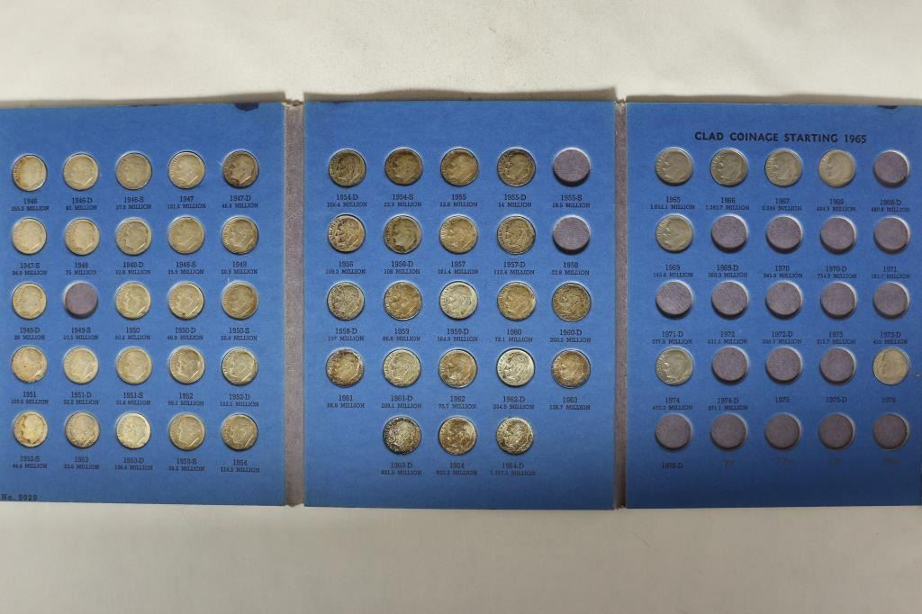 SILVER DIMES AND 7 NON SILVER DIMES IN WHITMAN ALBUM