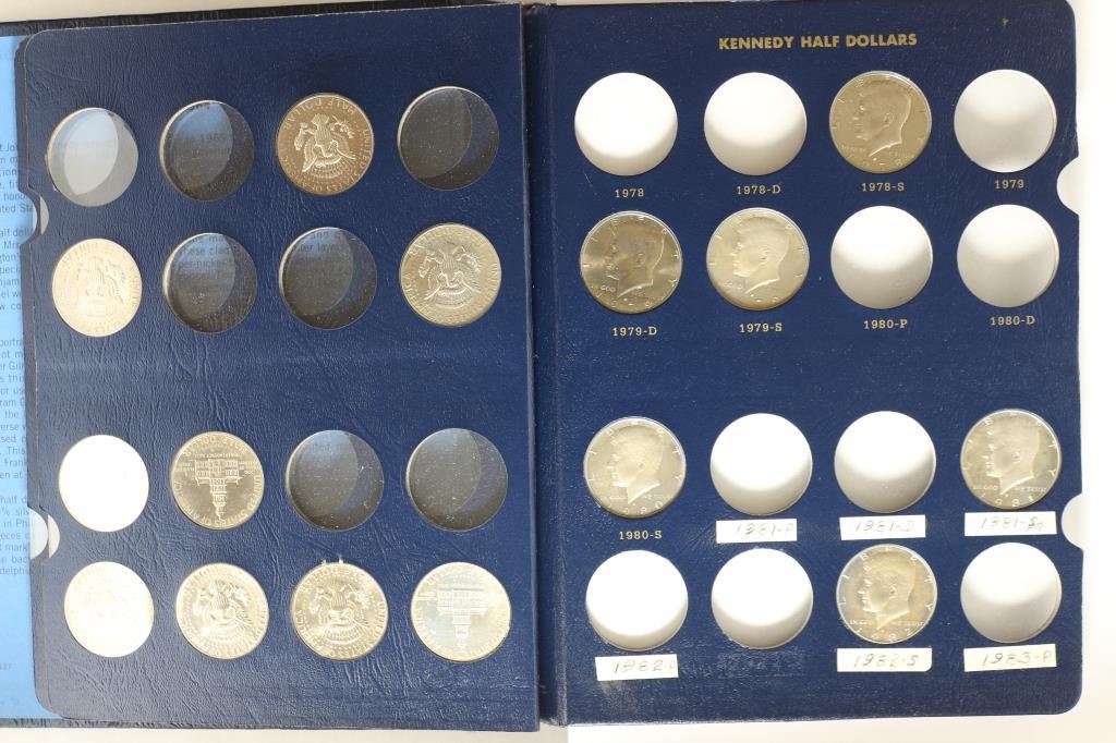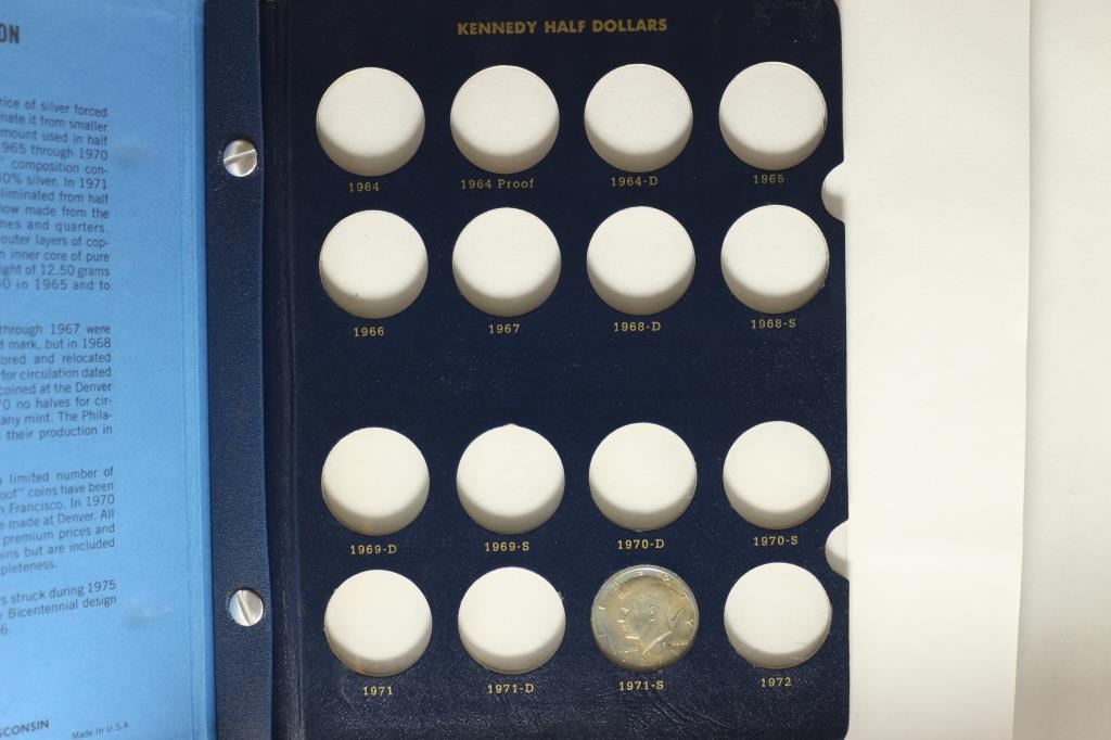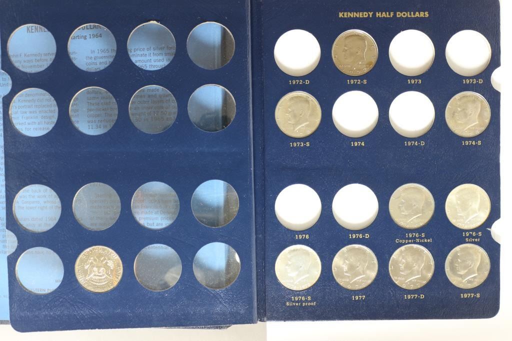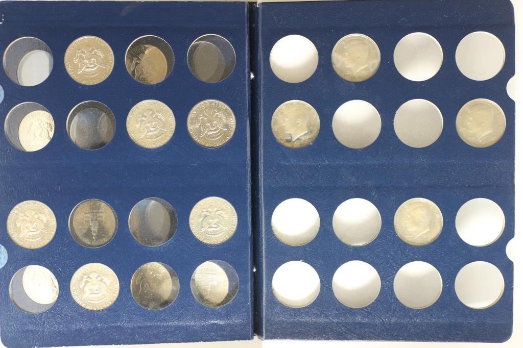 INCLUDING 2 SILVER ONES AND SOME PROOFS IN A WHITMAN DELUXE ALBUM WHICH IS MISSING SOME OF THE PLASTIC INSERT SLEEVES.