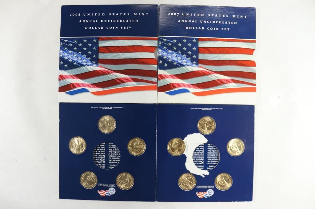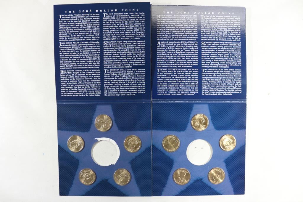 EACH SET CONTAINS: 4 PRESIDENTIAL DOLLARS AND A SACAGAWEA DOLLAR, MISSING THE AMERICAN SILVER EAGLE, ORIGINAL US MINT PACKAGING