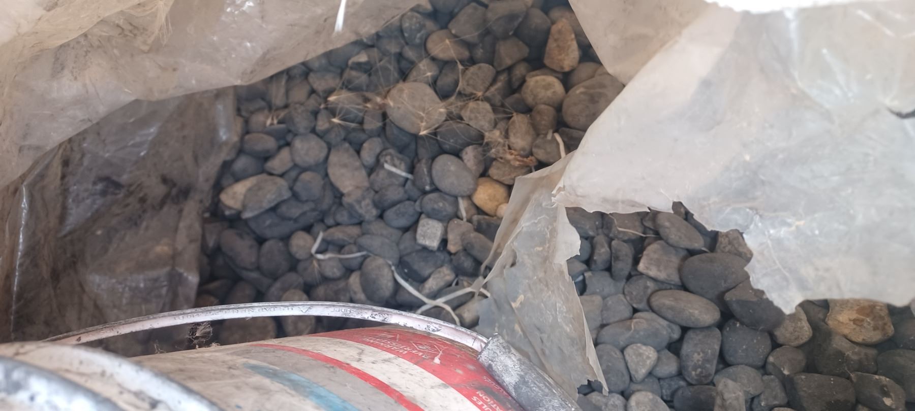 PARTIAL BAG OF DECORATIVE GRAVEL ROCKS
