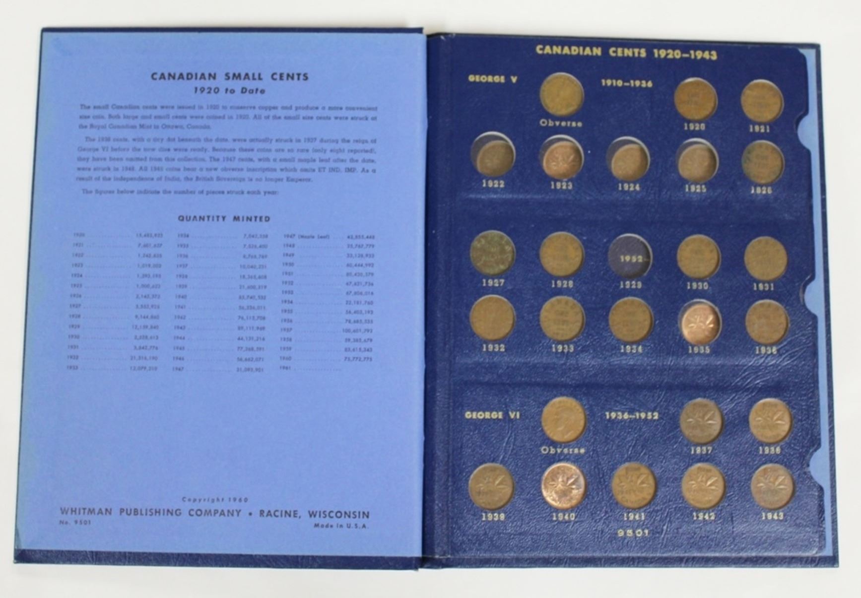 MISSING ONLY 1922 THRU 1925, 1929 AND 1935. 48 COINS IN WHITMAN. ESTIMATE: $100-$125