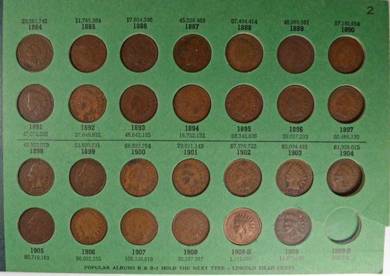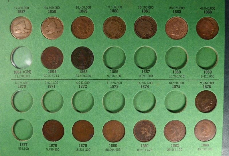 PARTIAL INDIAN HEAD CENT SET, HAS ( 2 FLYING EAGLE CENTS SEE DESCRIPTION)