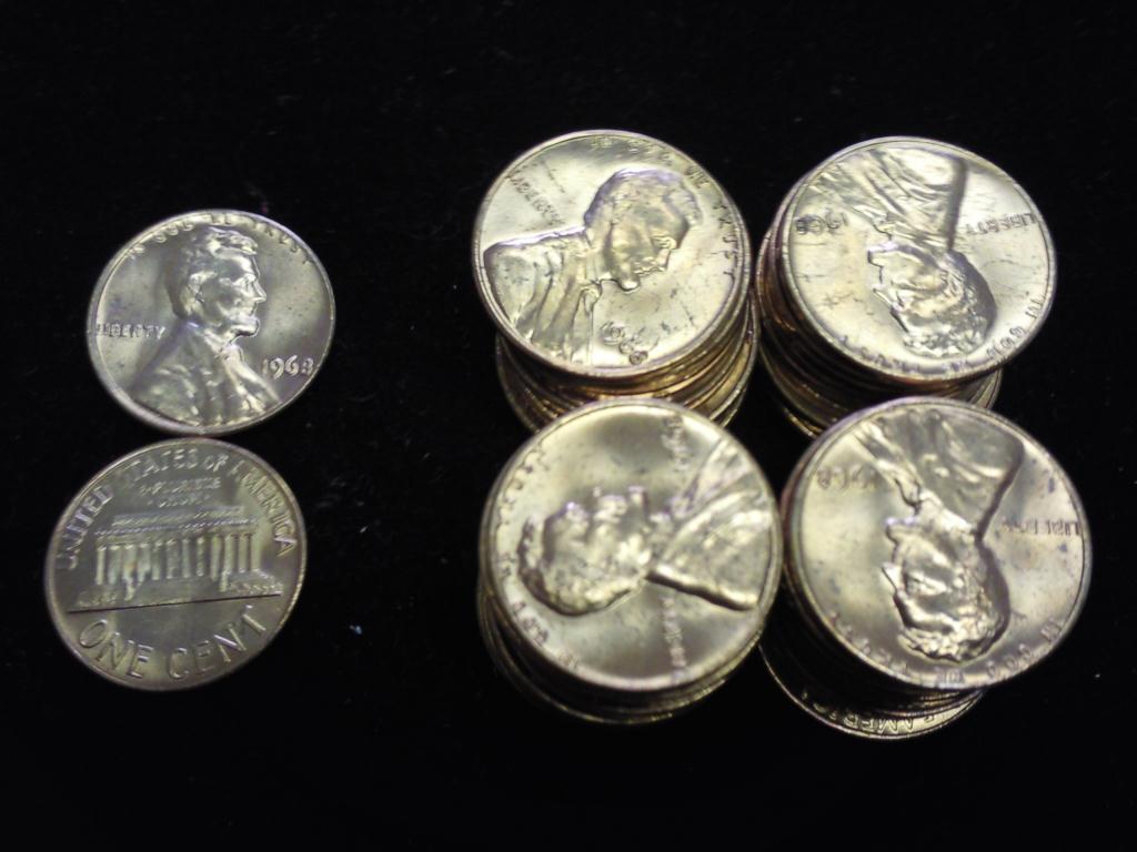 PARTIAL ROLL OF 44-1968 LINCOLN CENTS (UNC)
