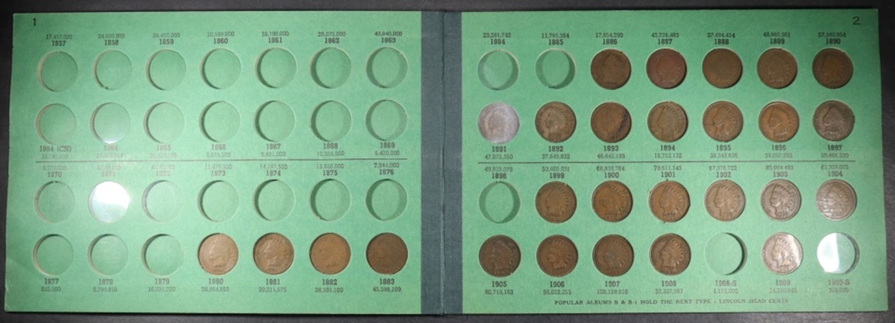 UNITED STATES SMALL CENTS (DATES RANGE: 1857-1909) MISSING 29 COINS ESTIMATE $150 - $200.