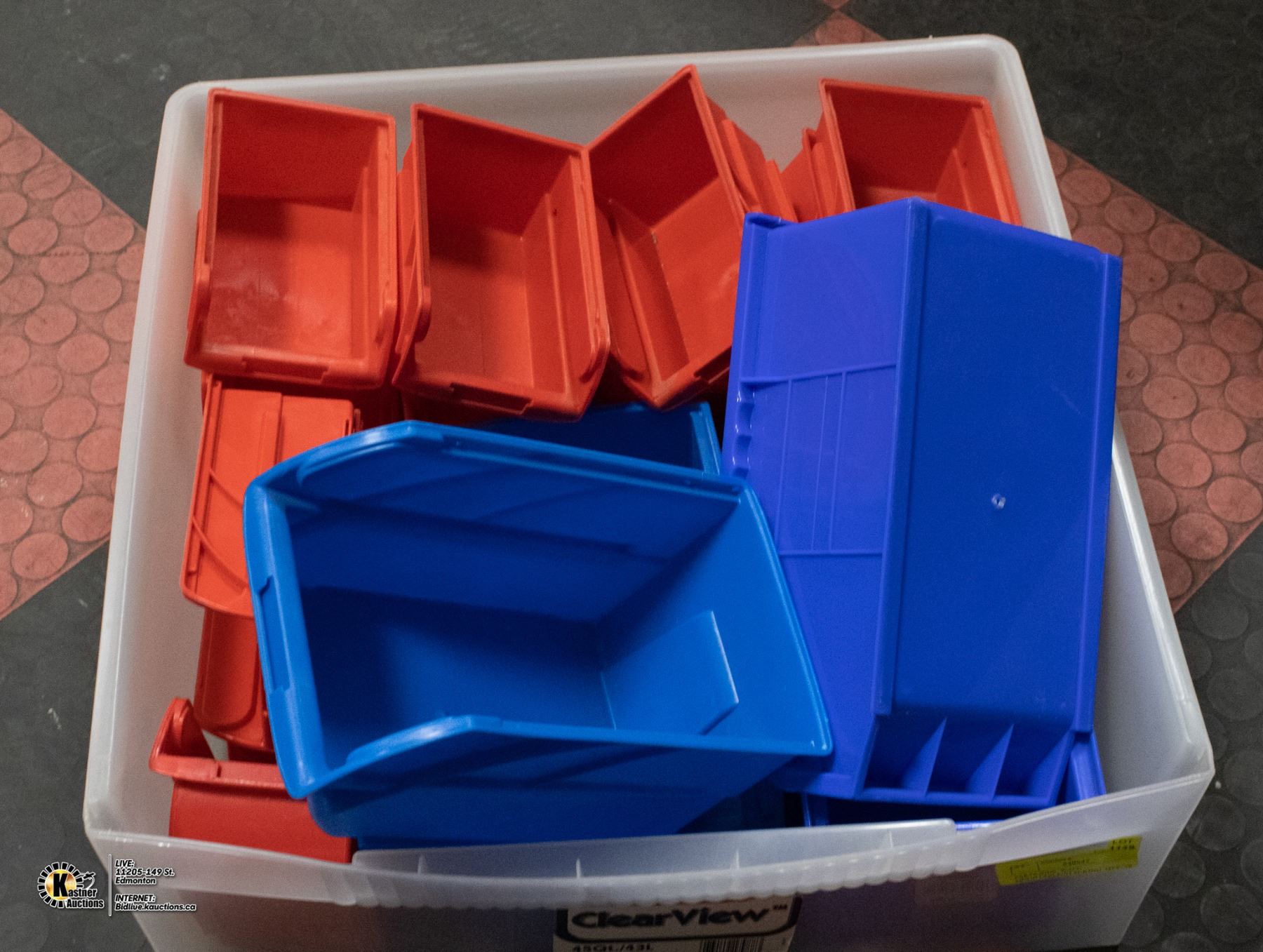 PARTS BINS, WALL MOUNTABLE/STACKING. QTY: 28 PCS