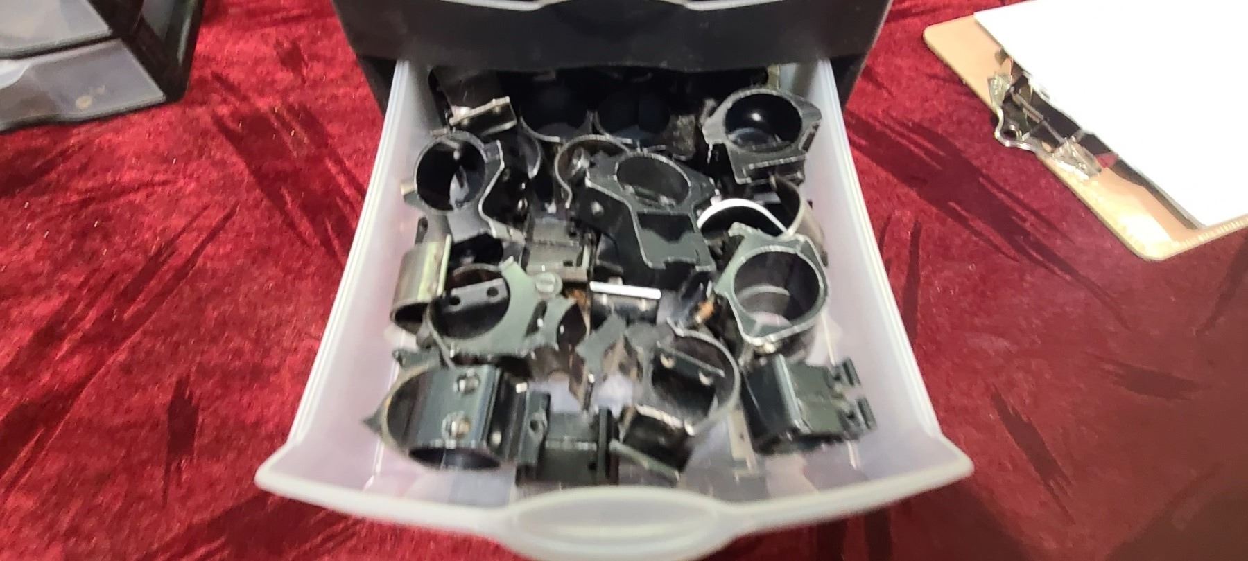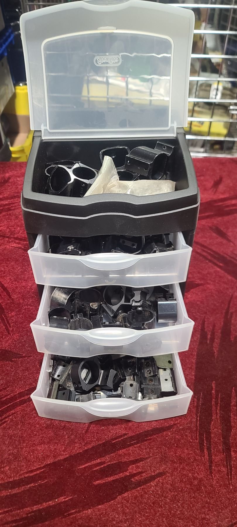 PARTS TRAY WITH LARGE ASSORTMENT OF RINGS AND BASES