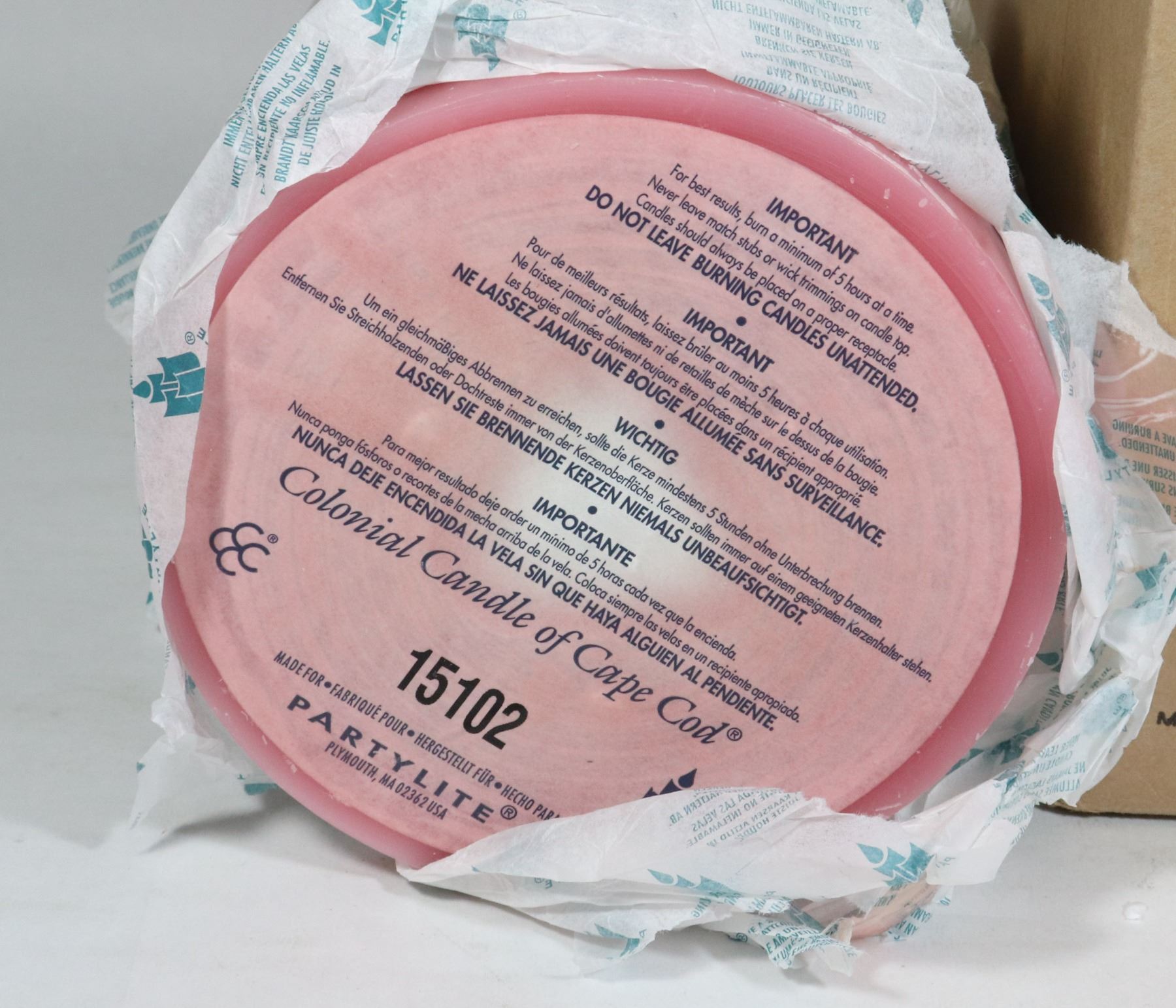 LARGE 3 WICK ROSE COLORED CANDLE.