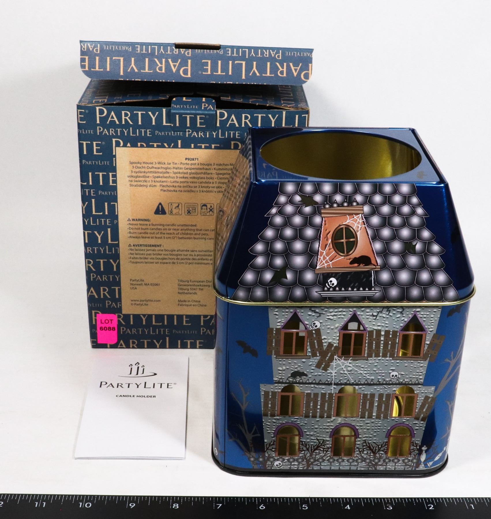 PARTYLITE SPOOKY HOUSE 3 WICK JAR TIN