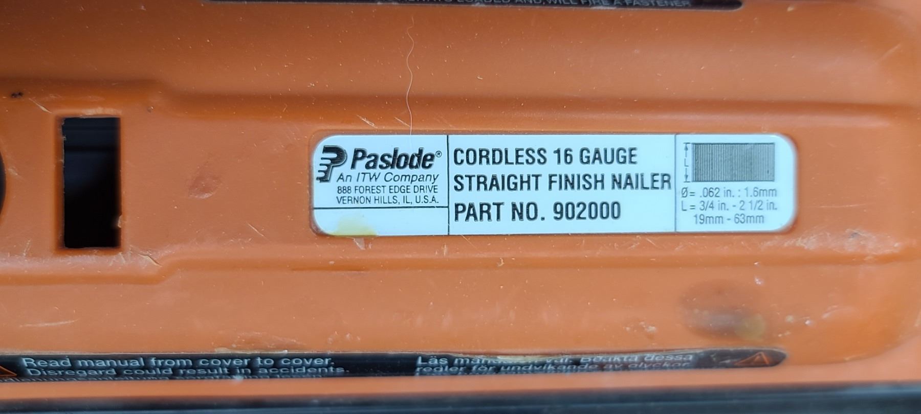 PASLODE CORDLESS 16GA FINISHING NAILER - COMES WITH CHARGER AND BATTERY