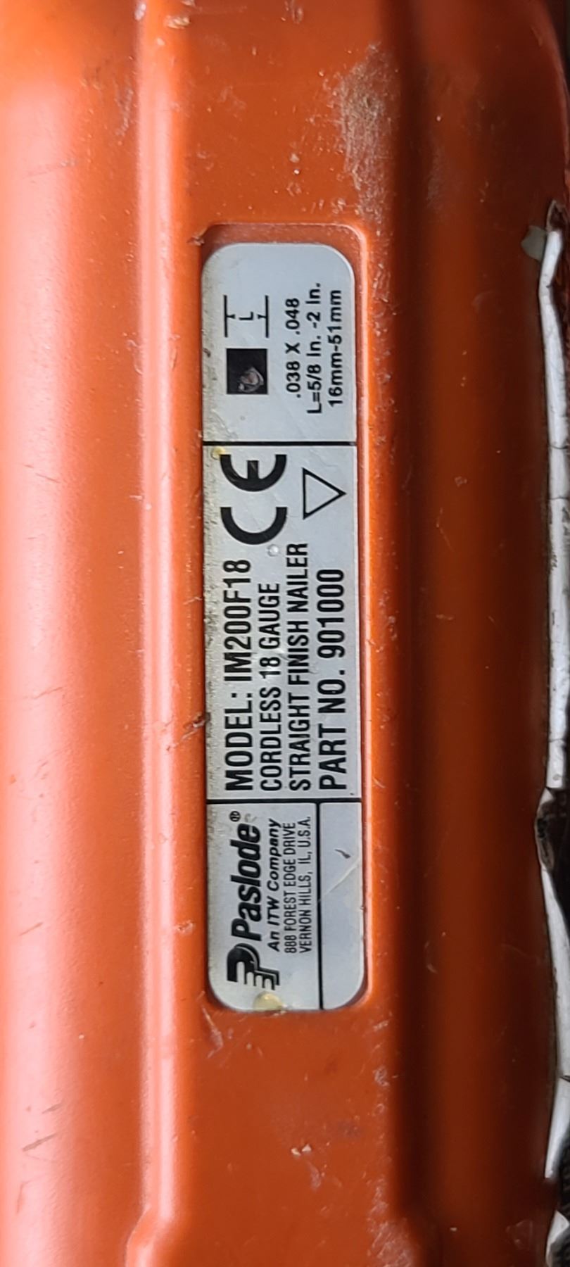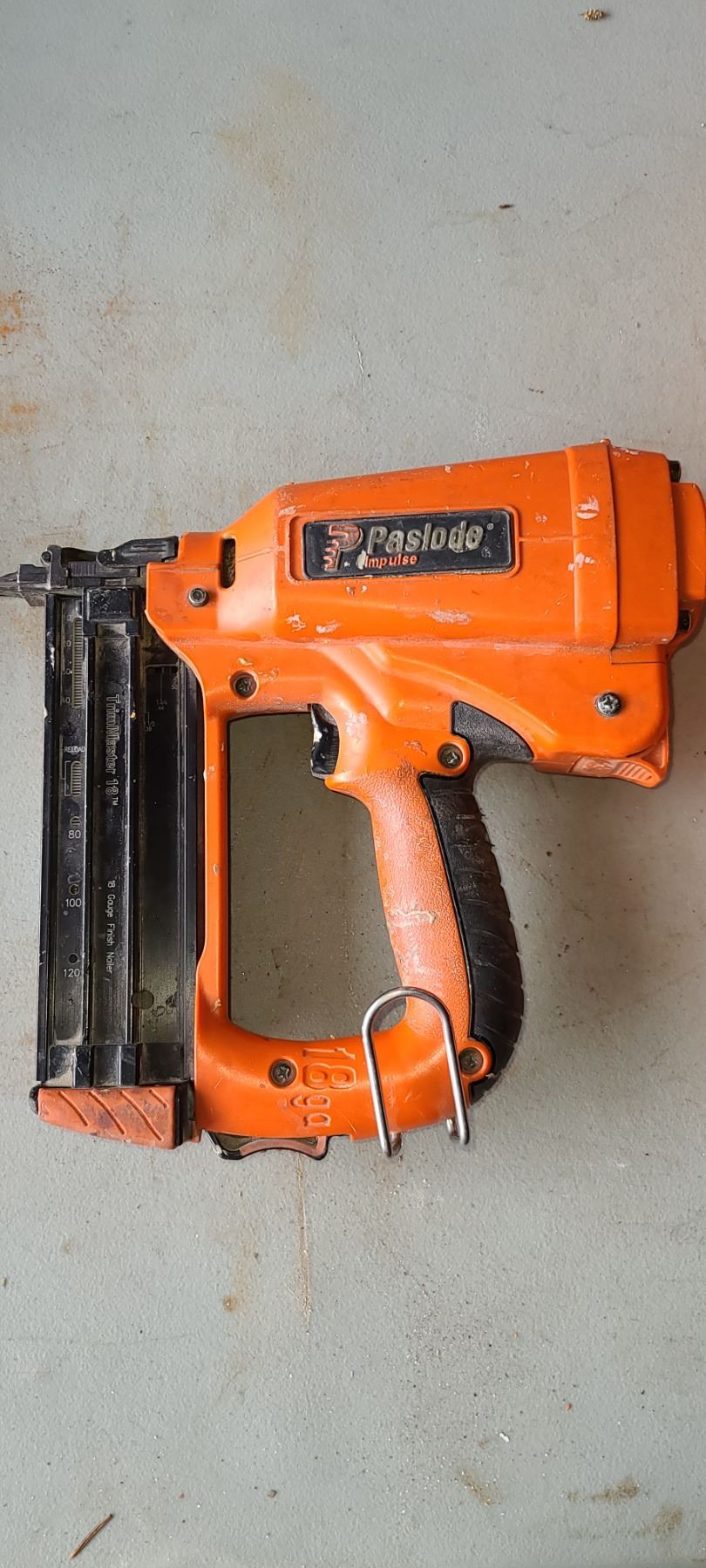 PASLODE IMPULSE MODEL IM200F18 STRAIGHT FINISH NAILER C/W 2 BATTERIES AND IS A COMPLETE SET