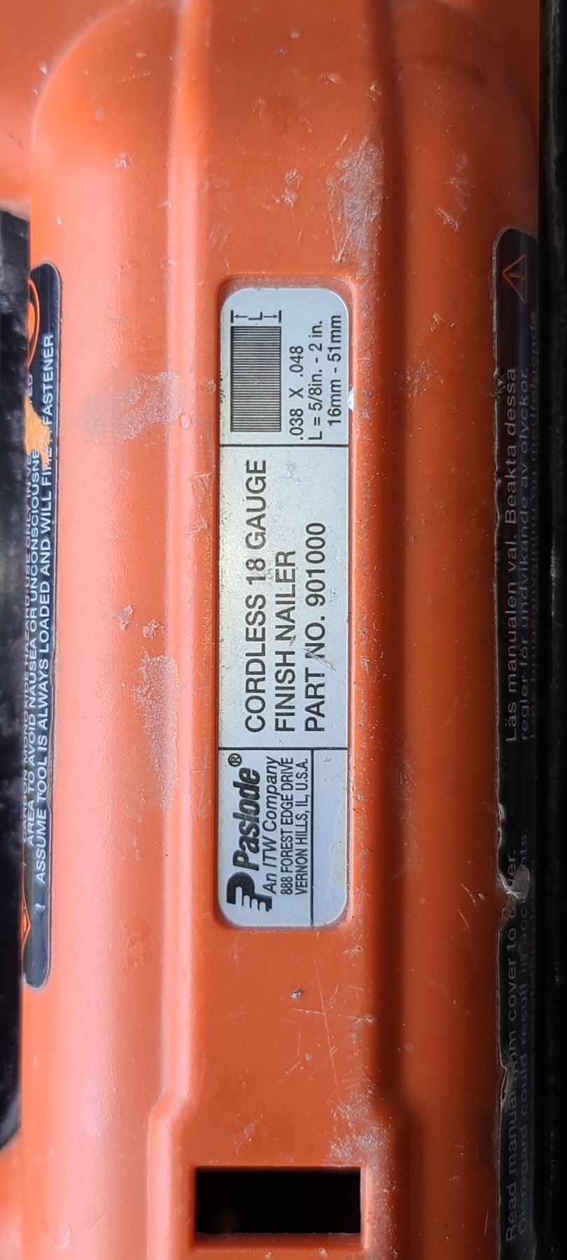 PASLODE TRIM MASTER 18GA FINISHING NAILER C/W BATTERY AND CHARGER