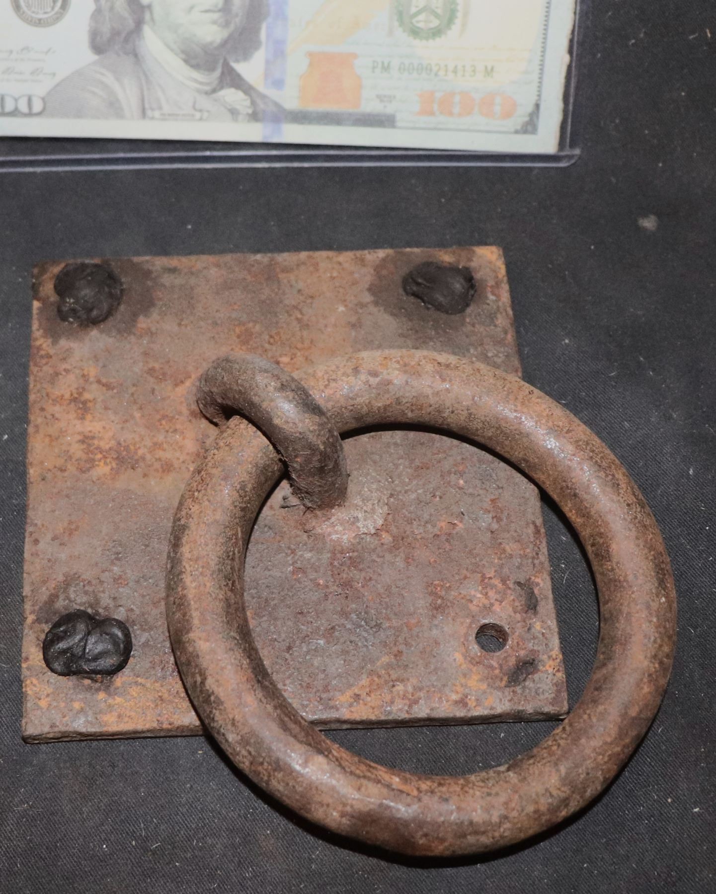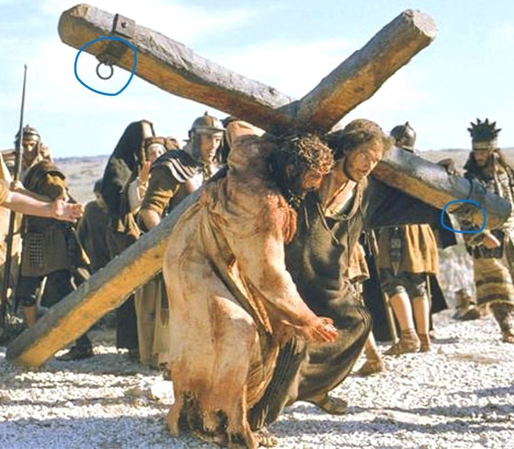 This mounted ring is from the Crucifixion Cross. The ring is mounted diagonal as seen in Screen Match. Ones used on the post as he is being scourged are squared.